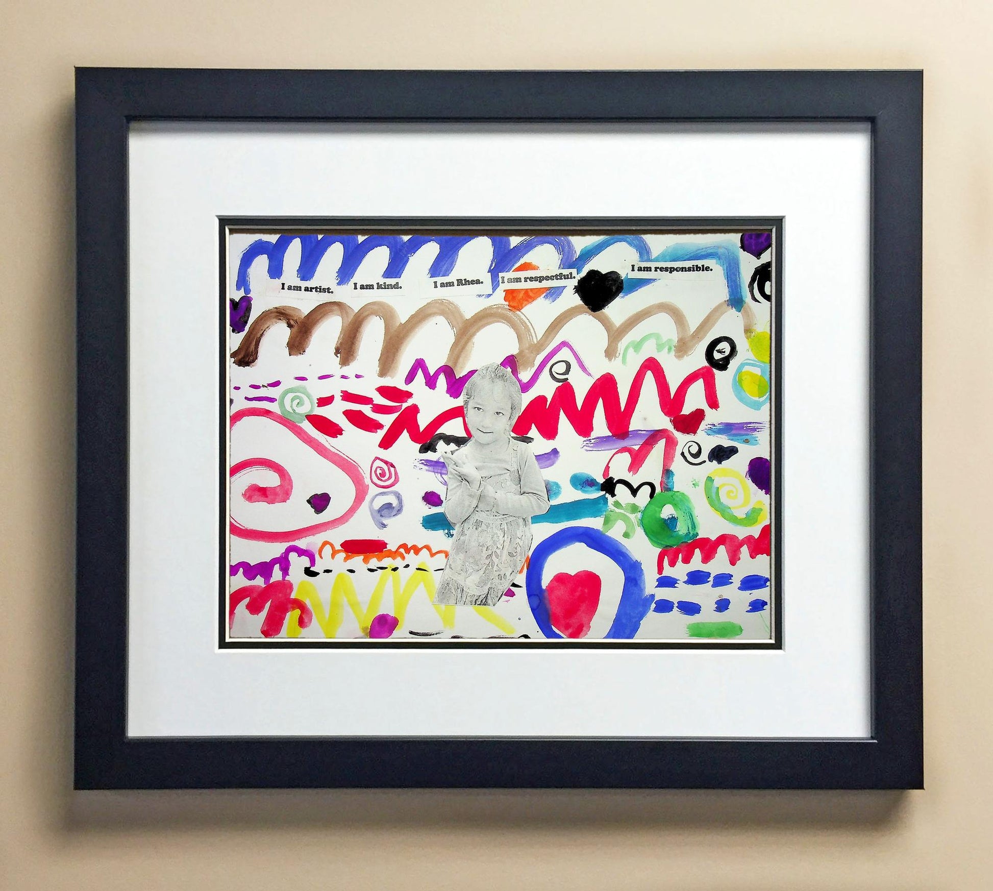 Included with the purchase is the Students Artwork, Frame, double matboard, shatter proof plexiglass, and a ready to hang backerboard with turnbuttons