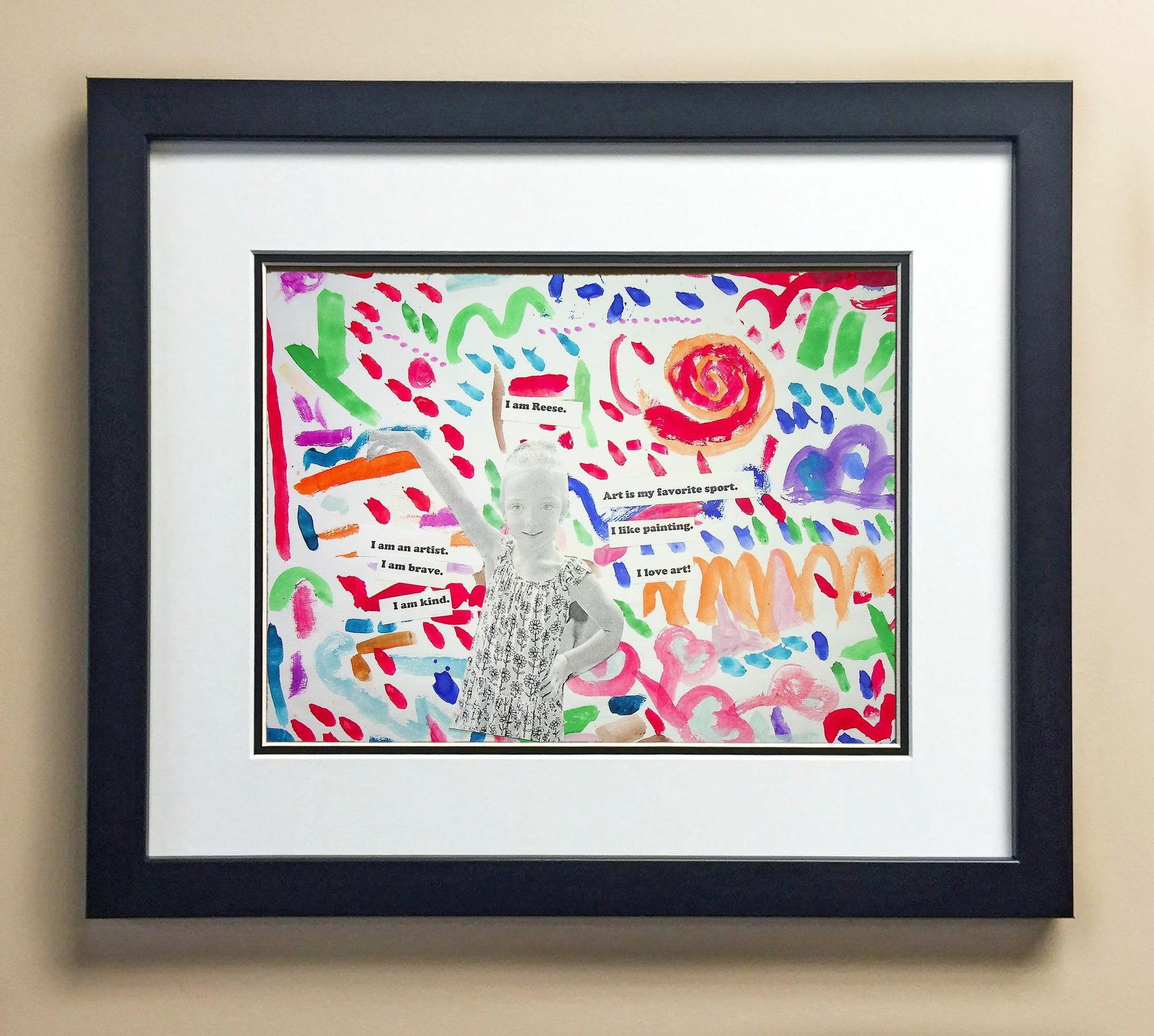 Included with the purchase is the Students Artwork, Frame, double matboard, shatter proof plexiglass, and a ready to hang backerboard with turnbuttons