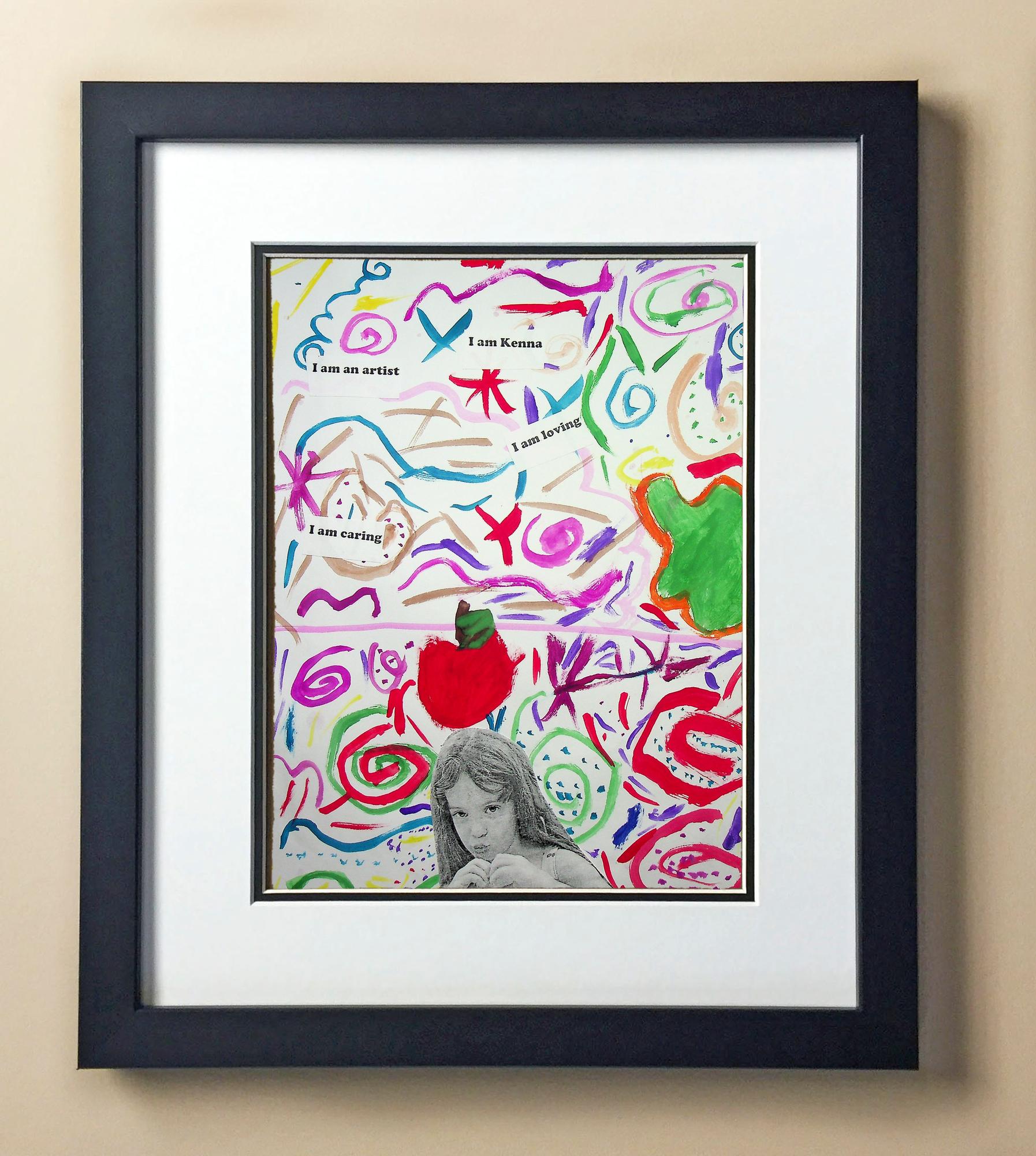 Included with the purchase is the Students Artwork, Frame, double matboard, shatter proof plexiglass, and a ready to hang backerboard with turnbuttons