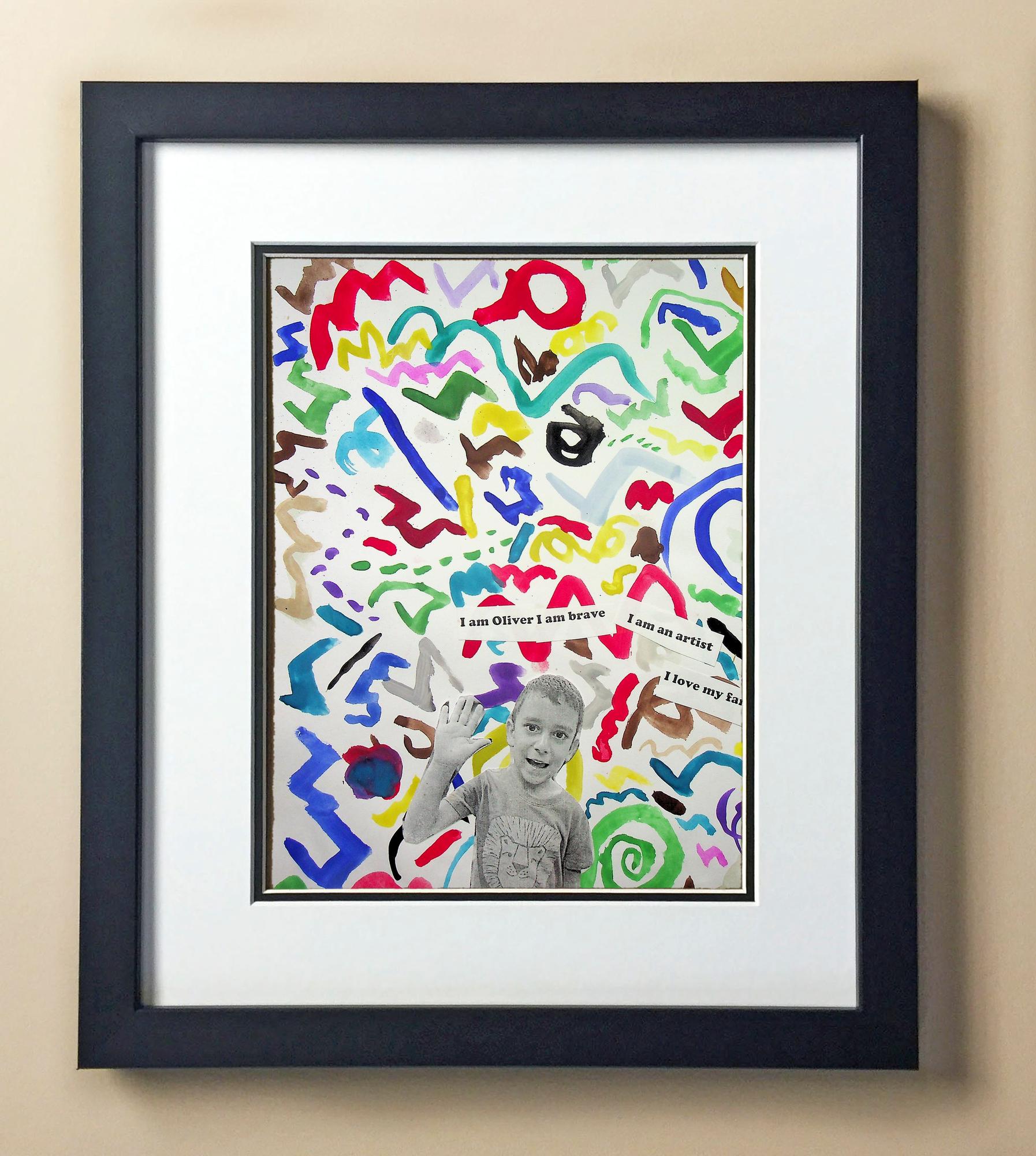 Included with the purchase is the Students Artwork, Frame, double matboard, shatter proof plexiglass, and a ready to hang backerboard with turnbuttons