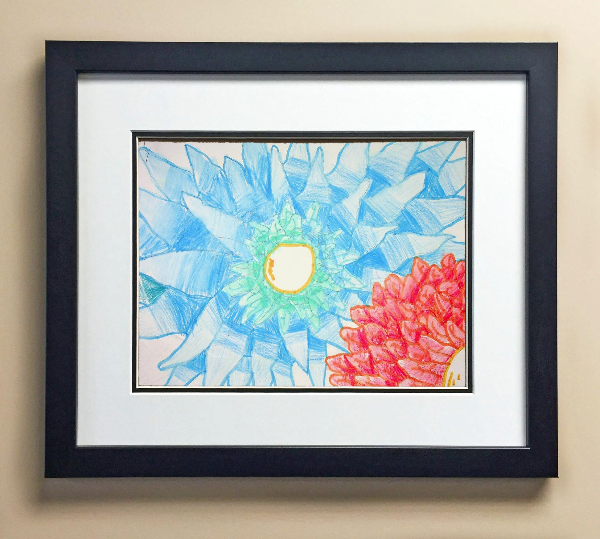 Included with the purchase is the Students Artwork, Frame, double matboard, shatter proof plexiglass, and a ready to hang backerboard with turnbuttons