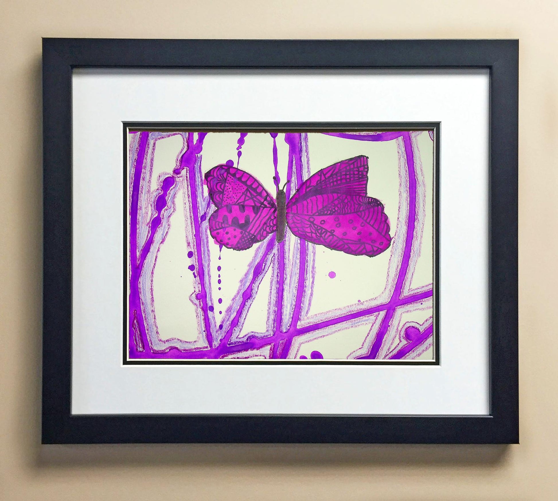 Included with the purchase is the Students Artwork, Frame, double matboard, shatter proof plexiglass, and a ready to hang backerboard with turnbuttons