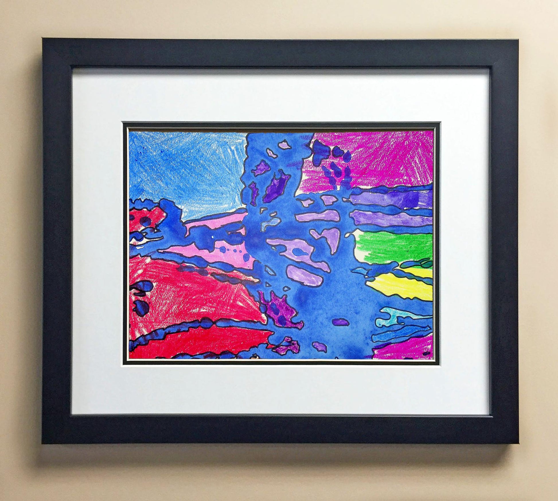 Included with the purchase is the Students Artwork, Frame, double matboard, shatter proof plexiglass, and a ready to hang backerboard with turnbuttons