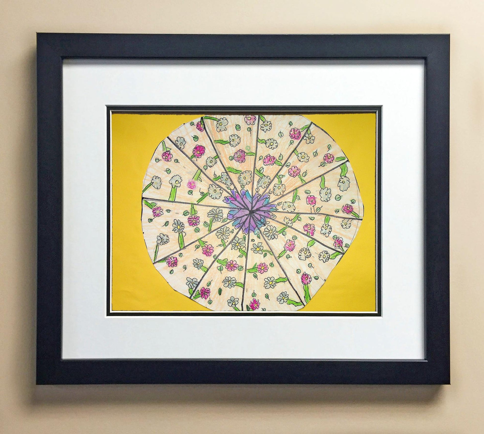 Included with the purchase is the Students Artwork, Frame, double matboard, shatter proof plexiglass, and a ready to hang backerboard with turnbuttons