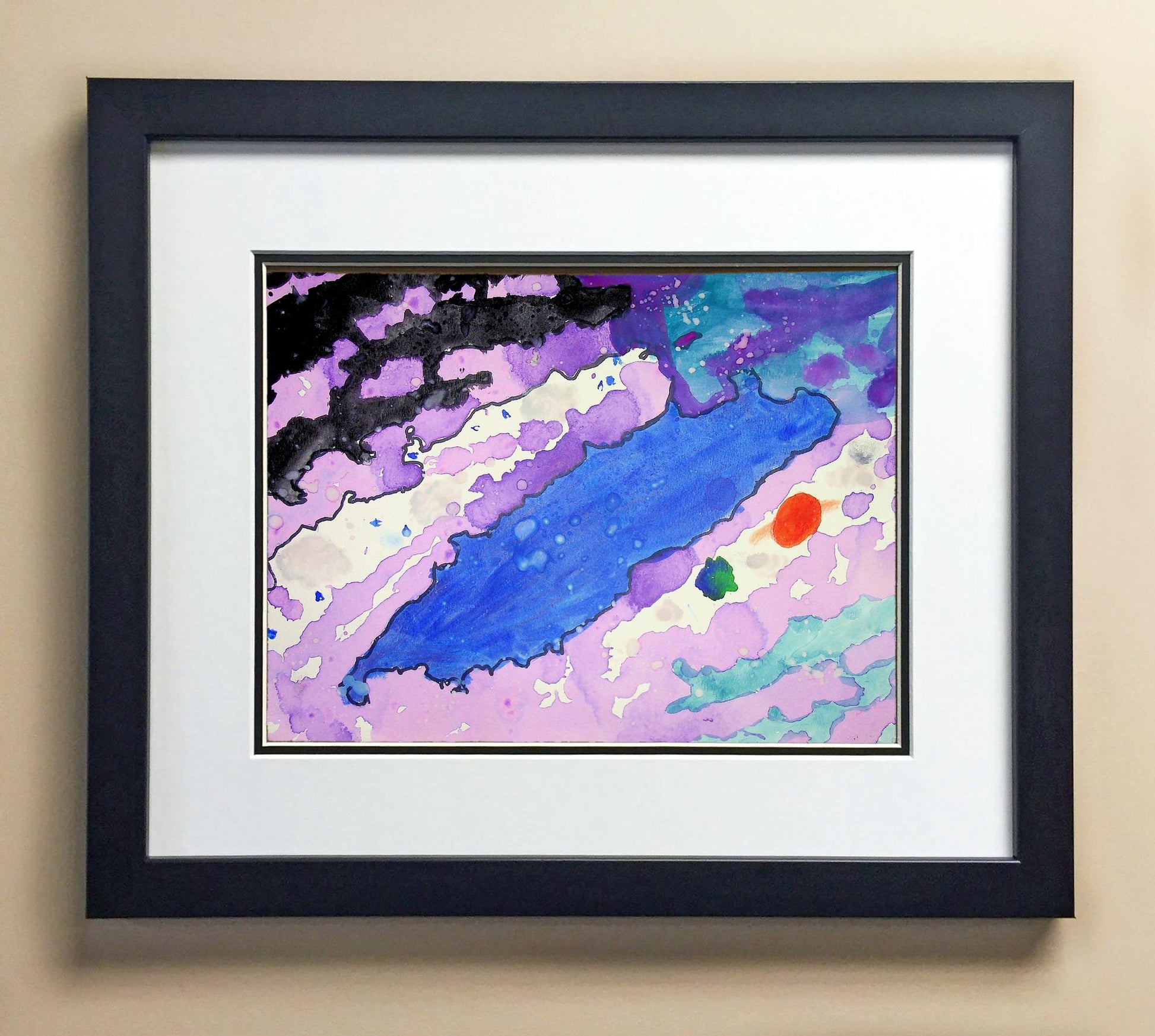 Included with the purchase is the Students Artwork, Frame, double matboard, shatter proof plexiglass, and a ready to hang backerboard with turnbuttons