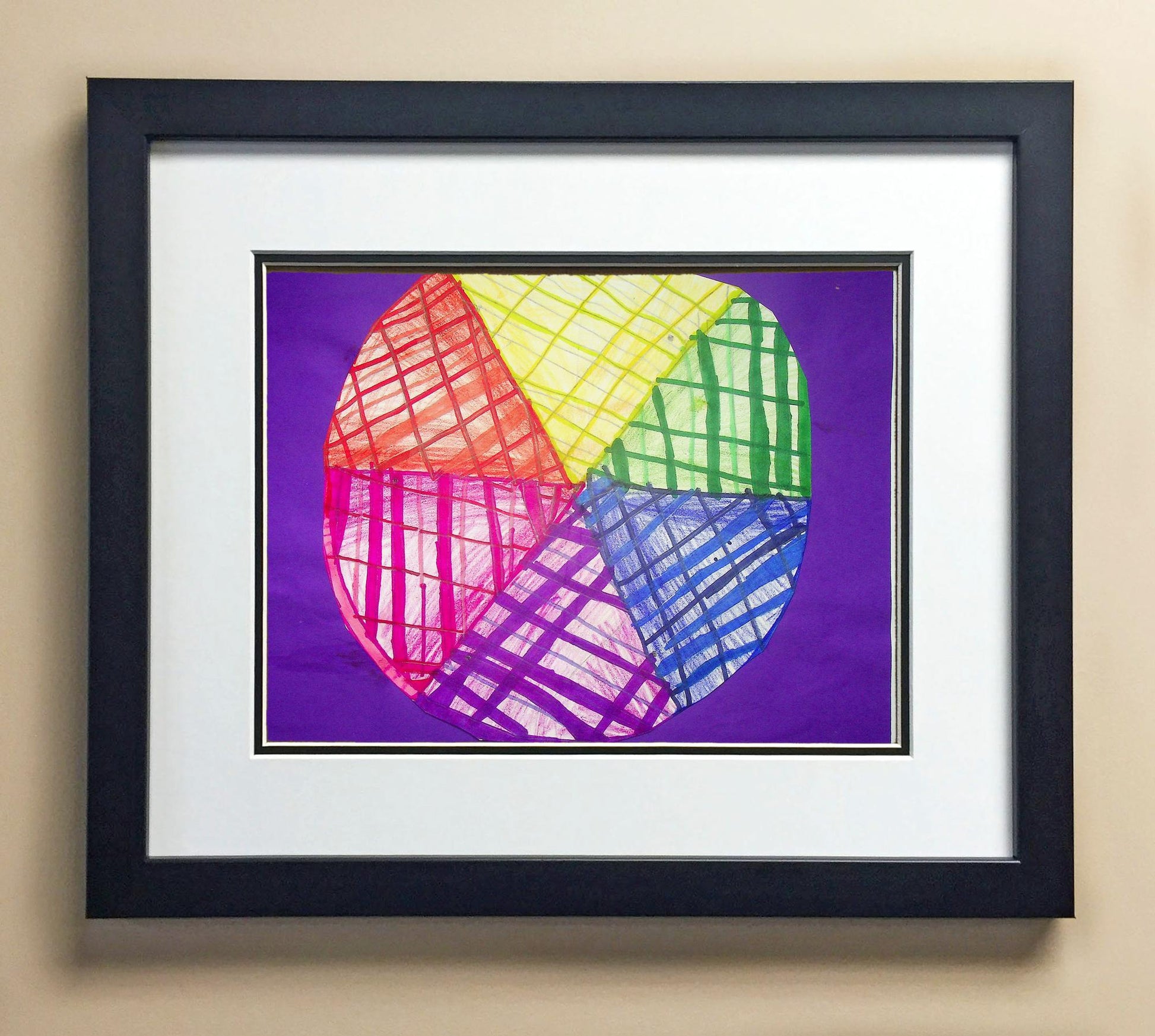 Included with the purchase is the Students Artwork, Frame, double matboard, shatter proof plexiglass, and a ready to hang backerboard with turnbuttons