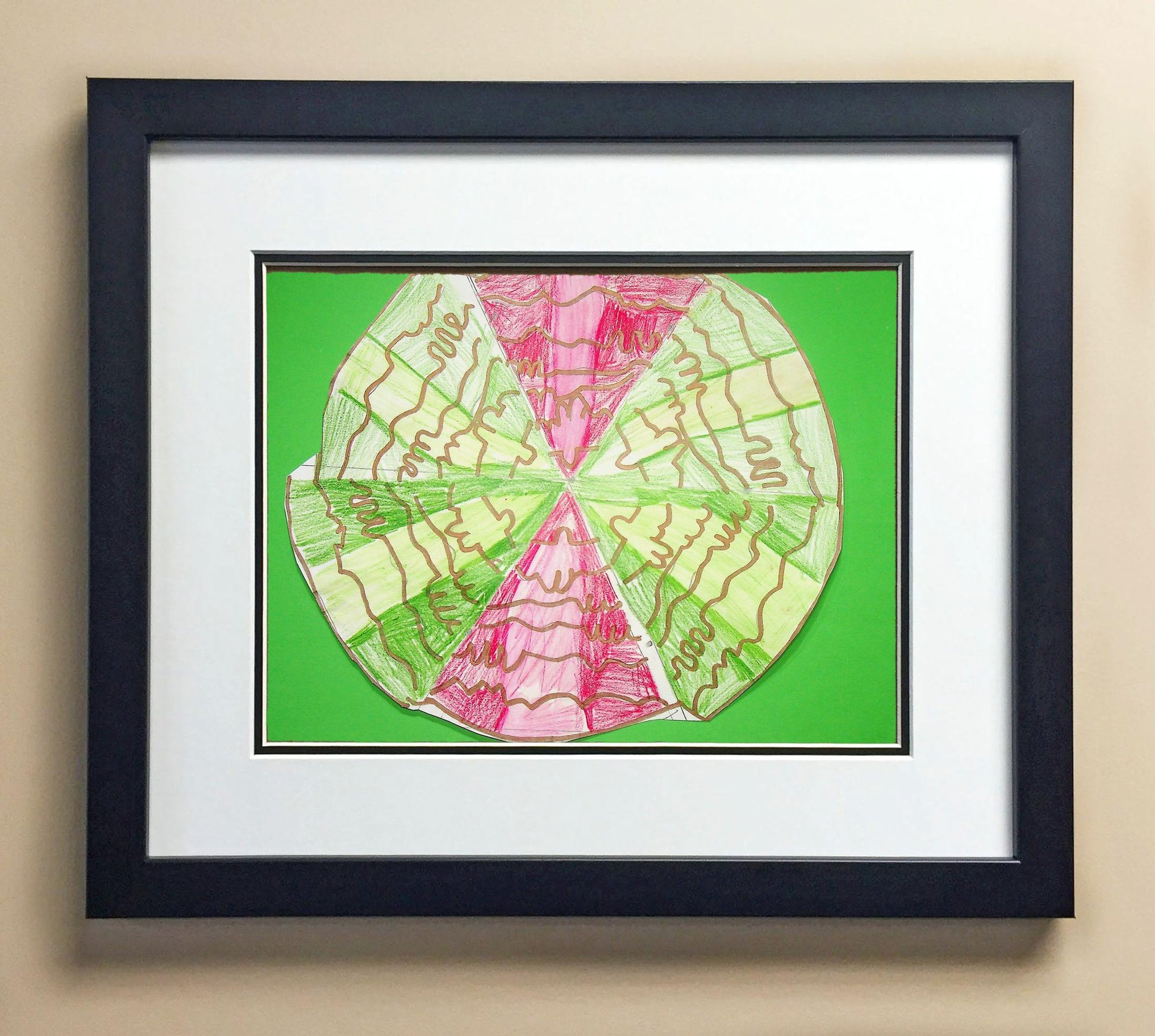 Included with the purchase is the Students Artwork, Frame, double matboard, shatter proof plexiglass, and a ready to hang backerboard with turnbuttons