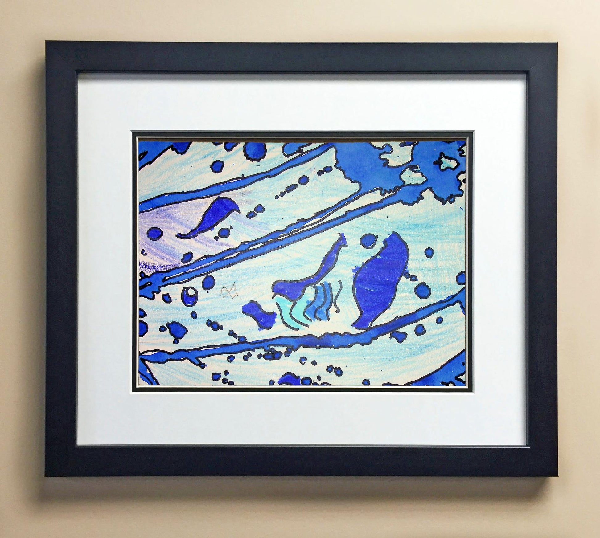 Included with the purchase is the Students Artwork, Frame, double matboard, shatter proof plexiglass, and a ready to hang backerboard with turnbuttons