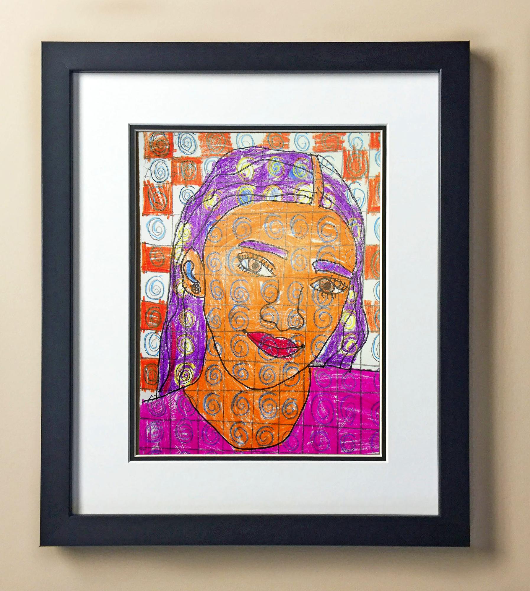 Included with the purchase is the Students Artwork, Frame, double matboard, shatter proof plexiglass, and a ready to hang backerboard with turnbuttons