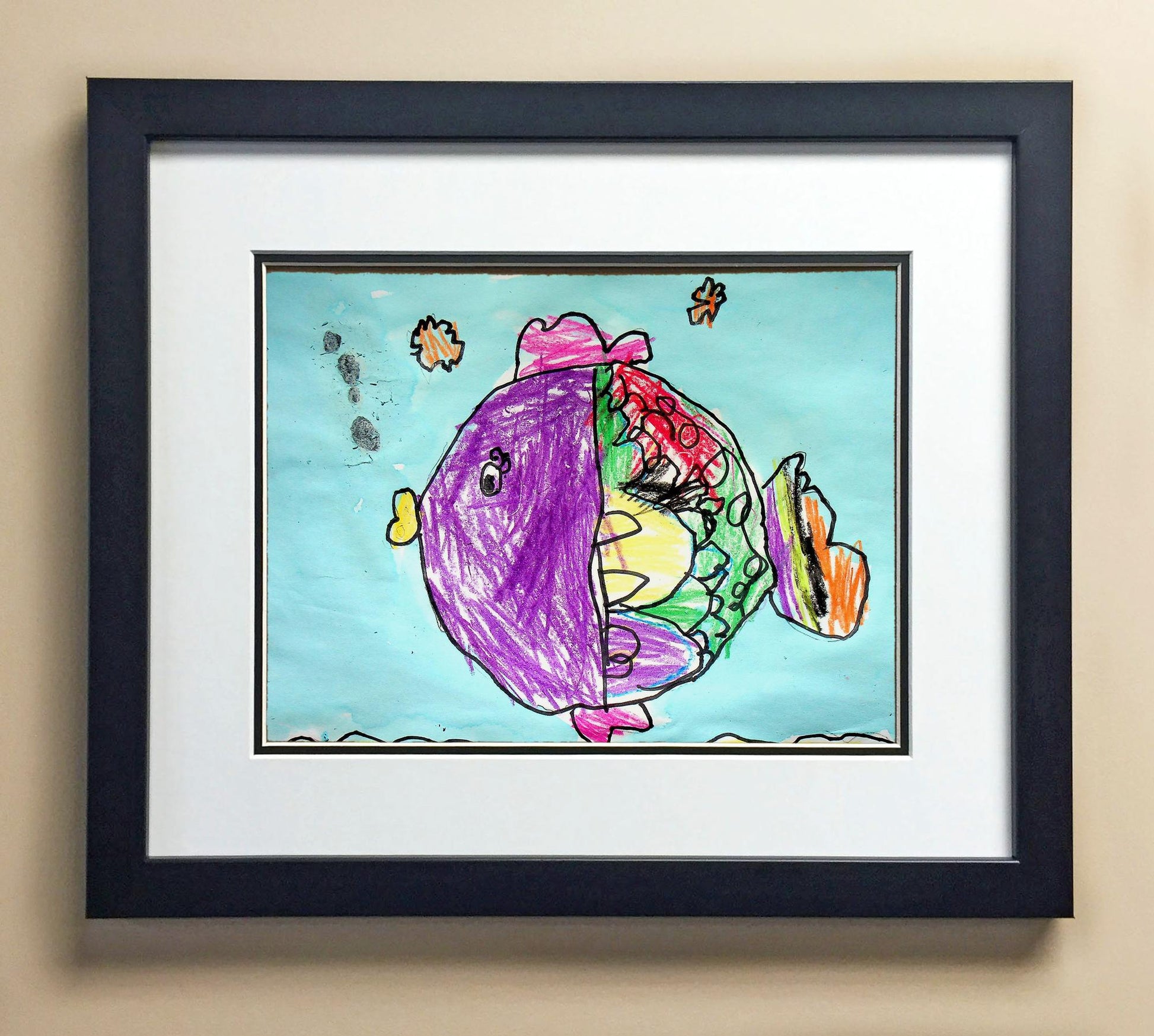 Included with the purchase is the Students Artwork, Frame, double matboard, shatter proof plexiglass, and a ready to hang backerboard with turnbuttons
