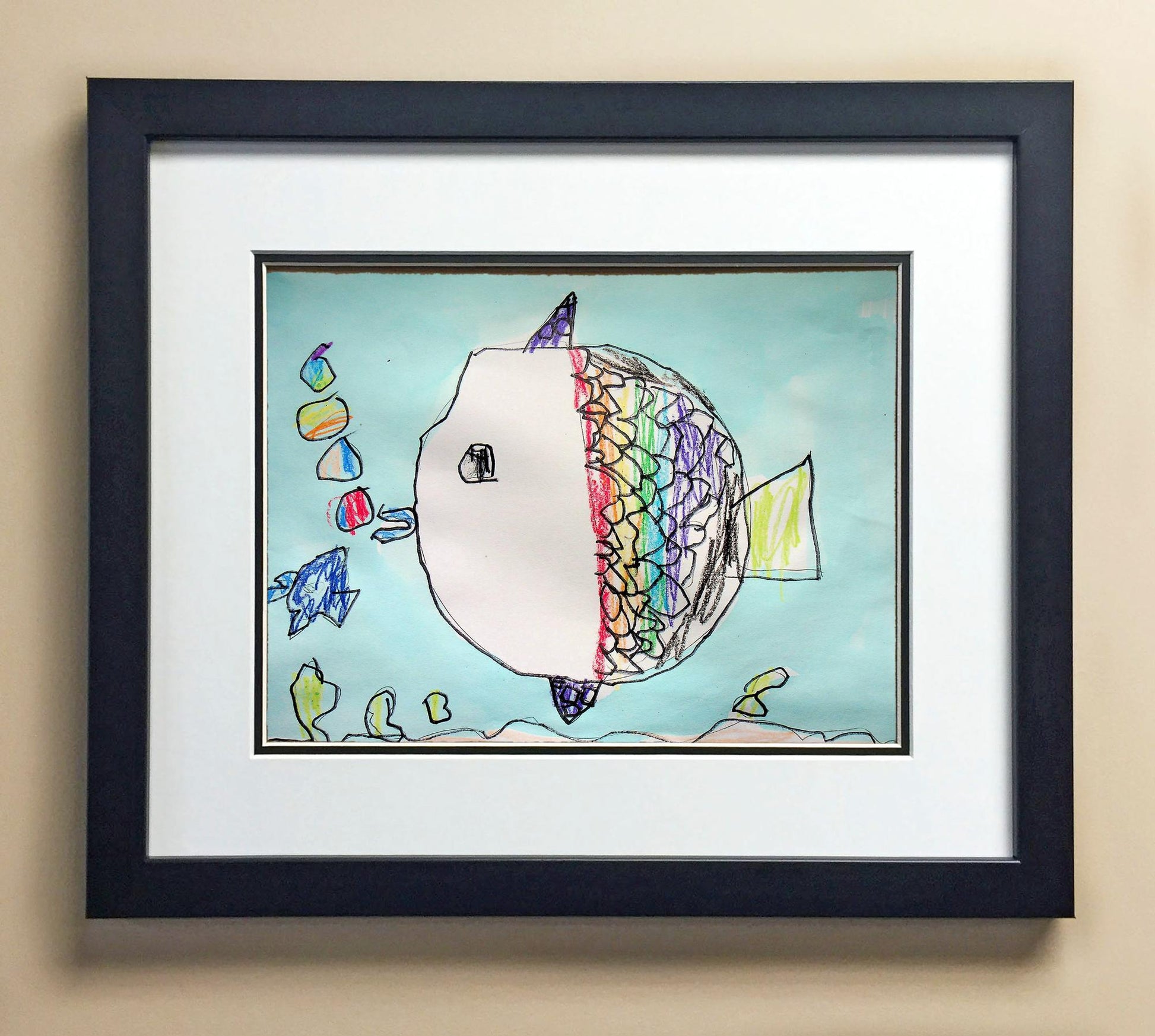 Included with the purchase is the Students Artwork, Frame, double matboard, shatter proof plexiglass, and a ready to hang backerboard with turnbuttons