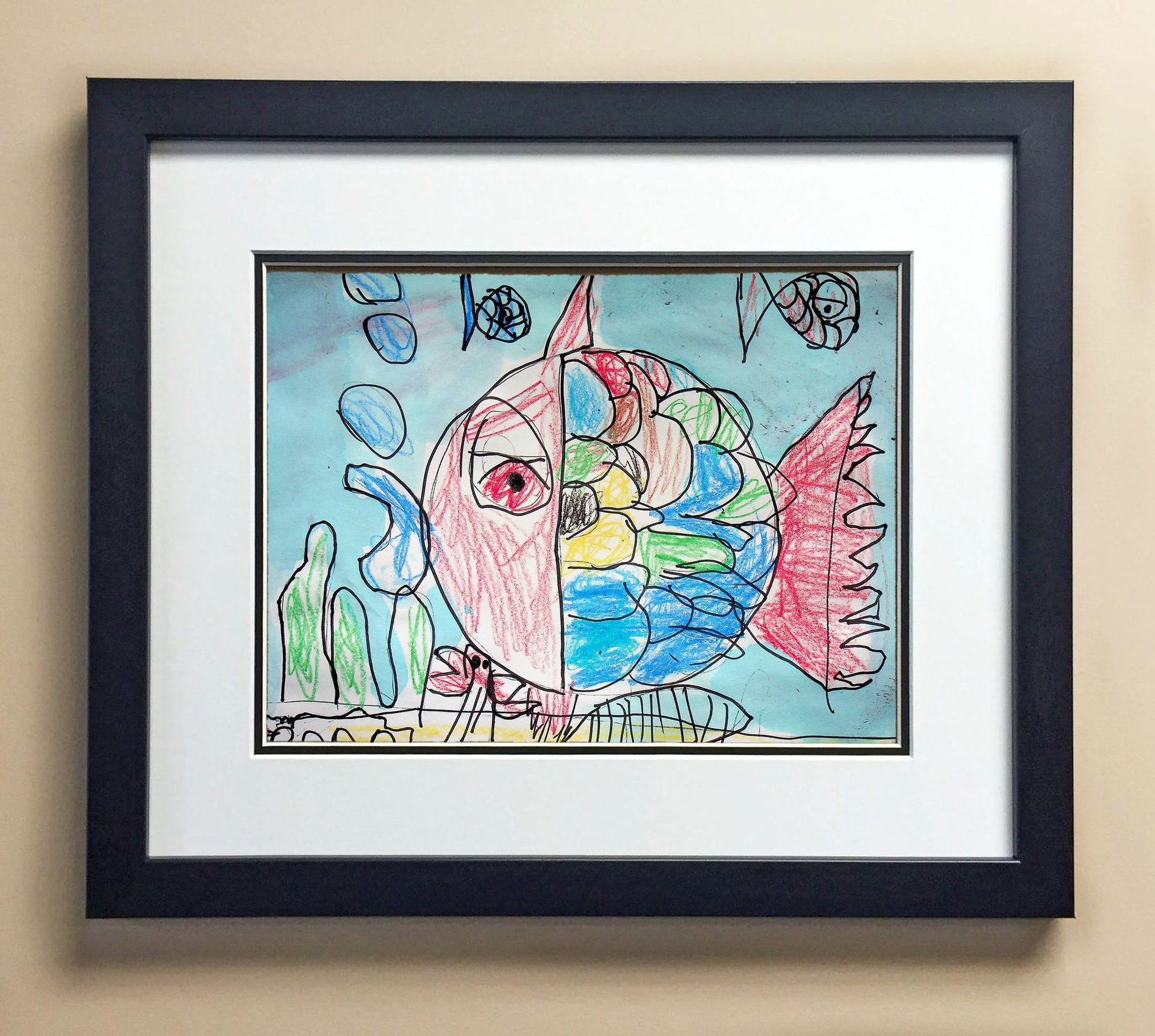 Included with the purchase is the Students Artwork, Frame, double matboard, shatter proof plexiglass, and a ready to hang backerboard with turnbuttons
