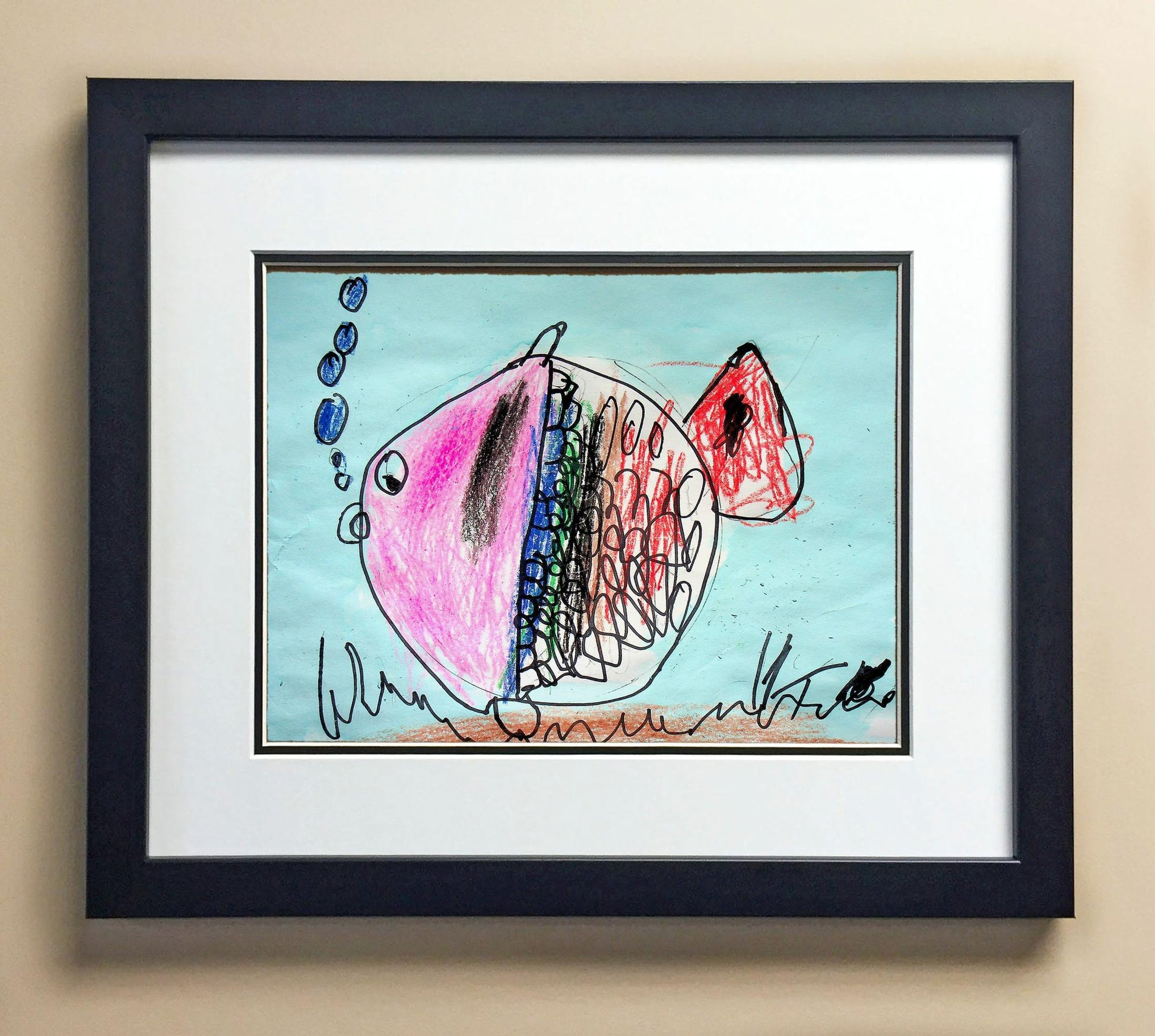 Included with the purchase is the Students Artwork, Frame, double matboard, shatter proof plexiglass, and a ready to hang backerboard with turnbuttons