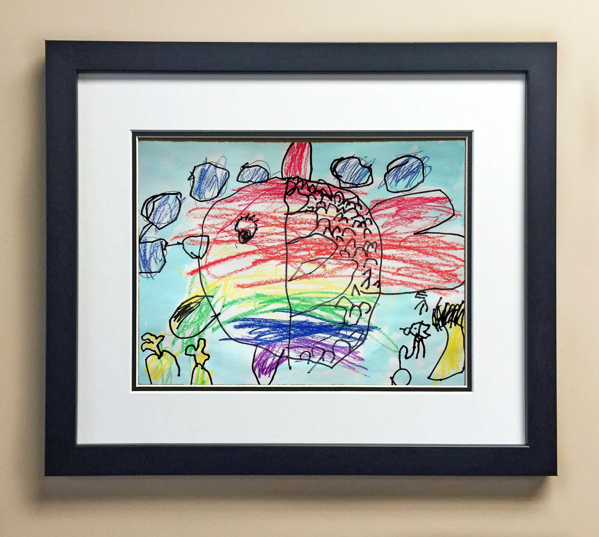 Included with the purchase is the Students Artwork, Frame, double matboard, shatter proof plexiglass, and a ready to hang backerboard with turnbuttons