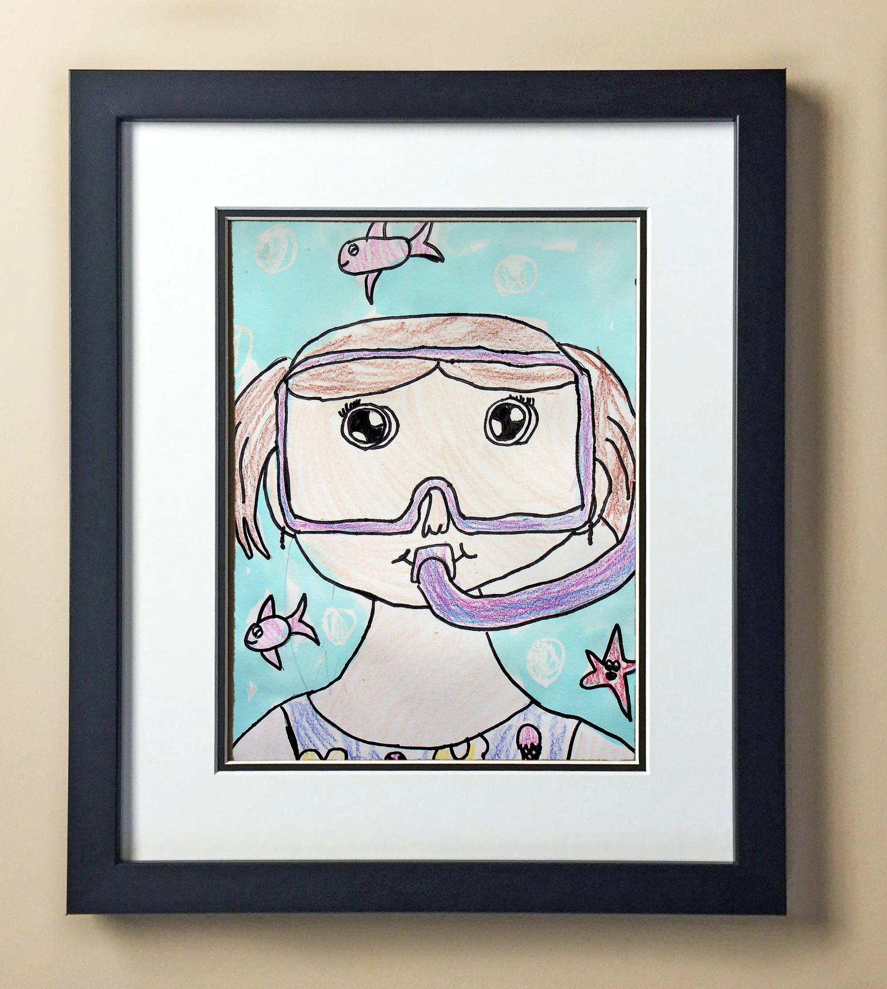 Included with the purchase is the Students Artwork, Frame, double matboard, shatter proof plexiglass, and a ready to hang backerboard with turnbuttons