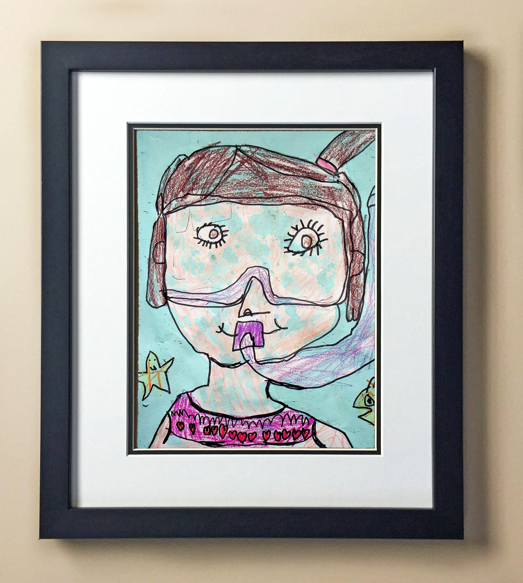 Included with the purchase is the Students Artwork, Frame, double matboard, shatter proof plexiglass, and a ready to hang backerboard with turnbuttons