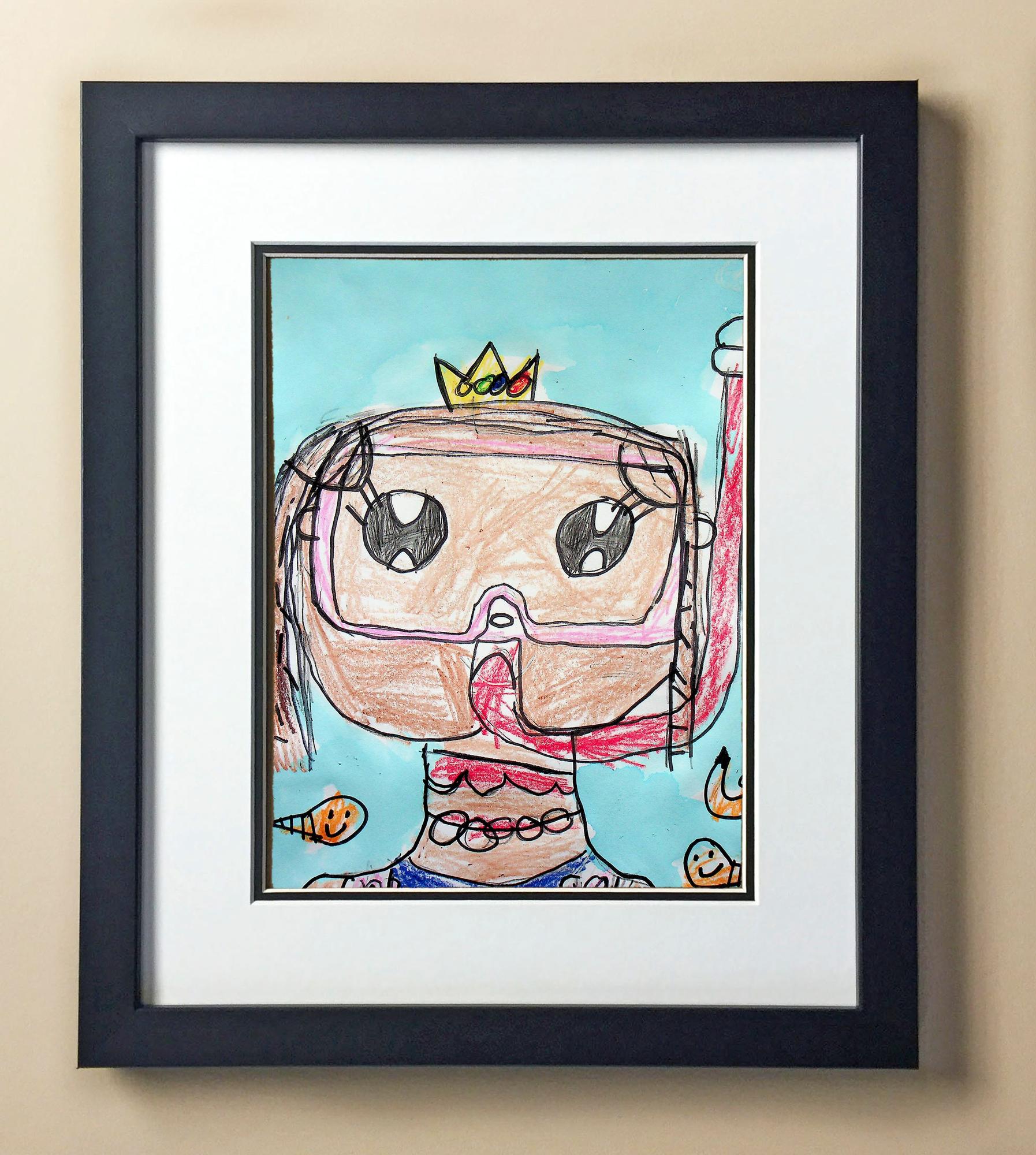 Included with the purchase is the Students Artwork, Frame, double matboard, shatter proof plexiglass, and a ready to hang backerboard with turnbuttons