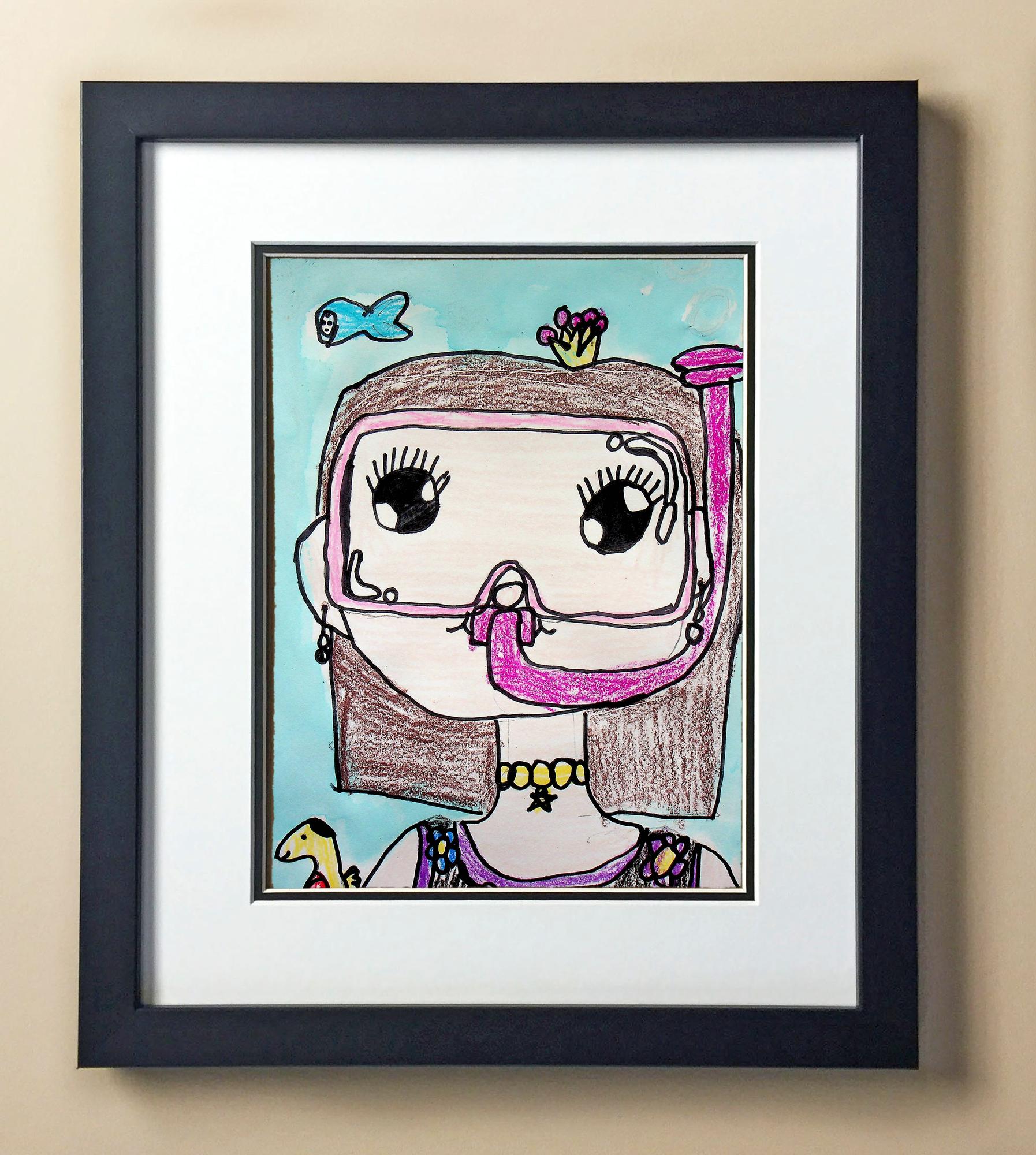 Included with the purchase is the Students Artwork, Frame, double matboard, shatter proof plexiglass, and a ready to hang backerboard with turnbuttons