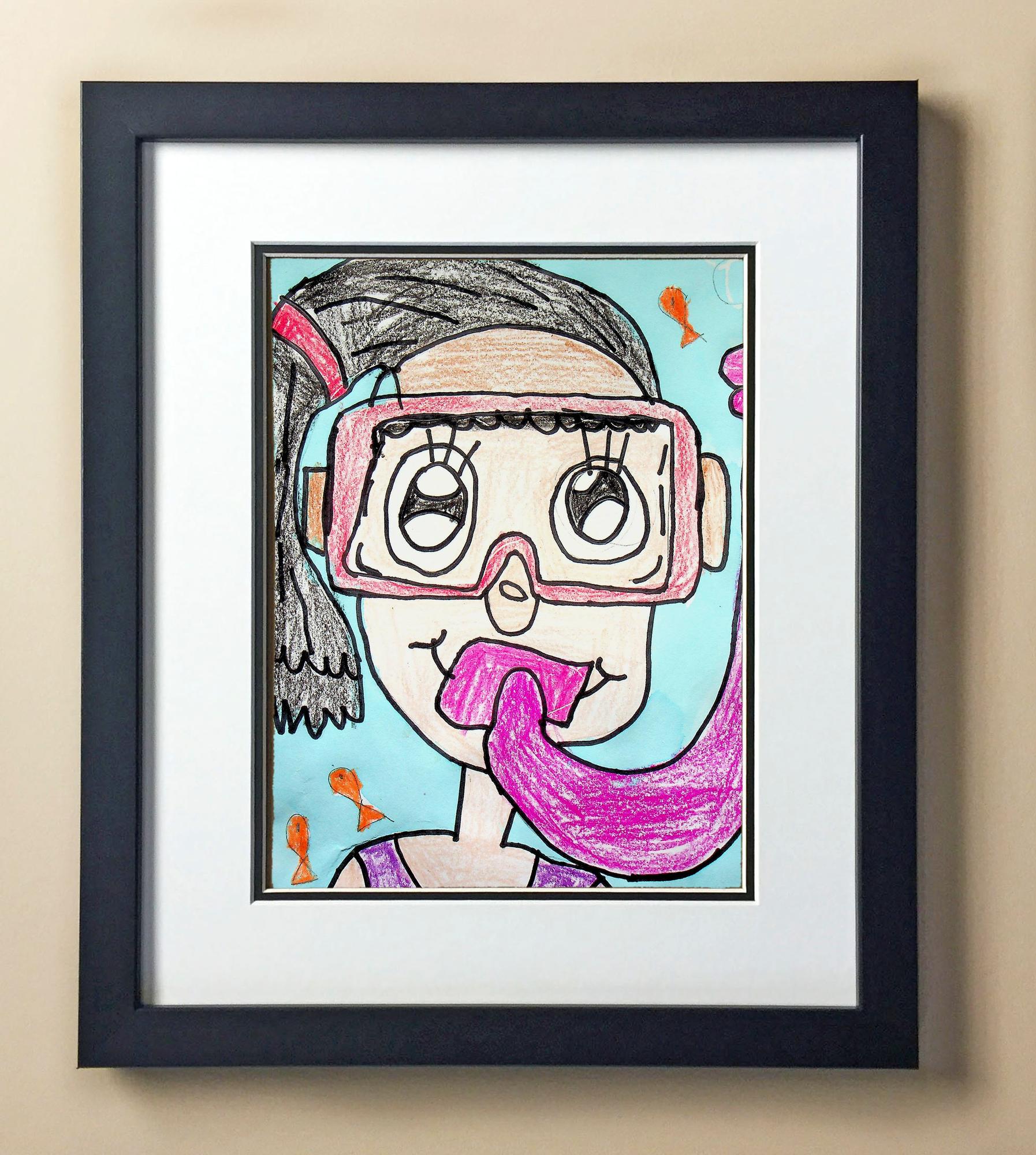 Included with the purchase is the Students Artwork, Frame, double matboard, shatter proof plexiglass, and a ready to hang backerboard with turnbuttons