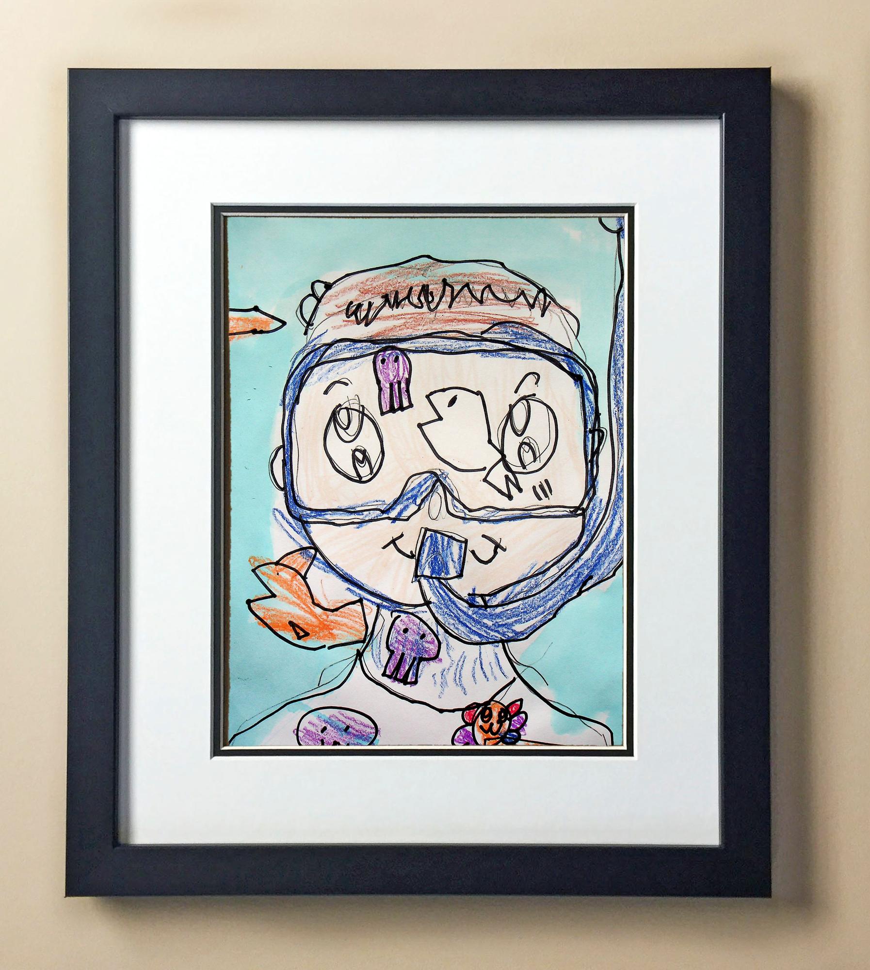 Included with the purchase is the Students Artwork, Frame, double matboard, shatter proof plexiglass, and a ready to hang backerboard with turnbuttons