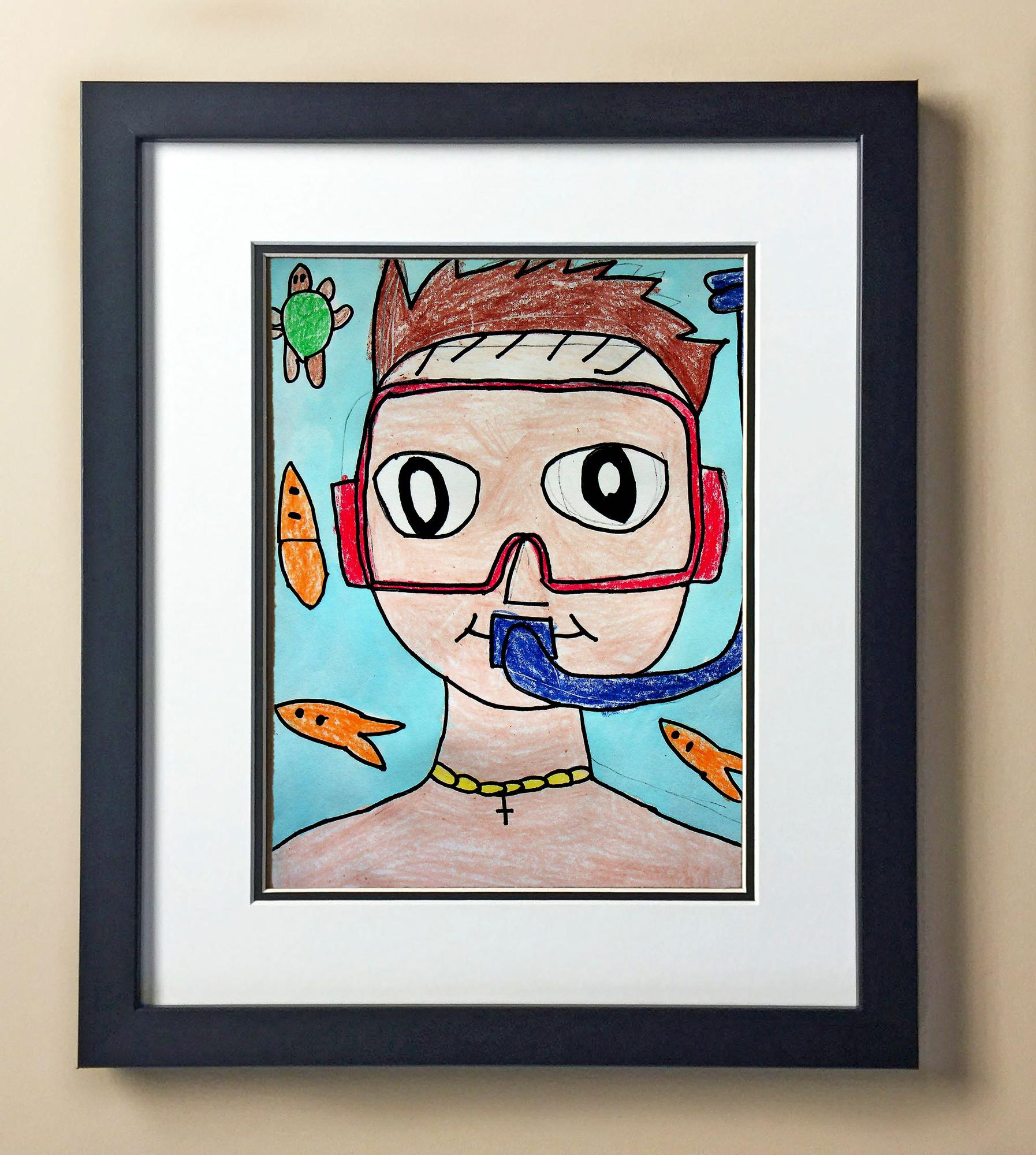 Included with the purchase is the Students Artwork, Frame, double matboard, shatter proof plexiglass, and a ready to hang backerboard with turnbuttons