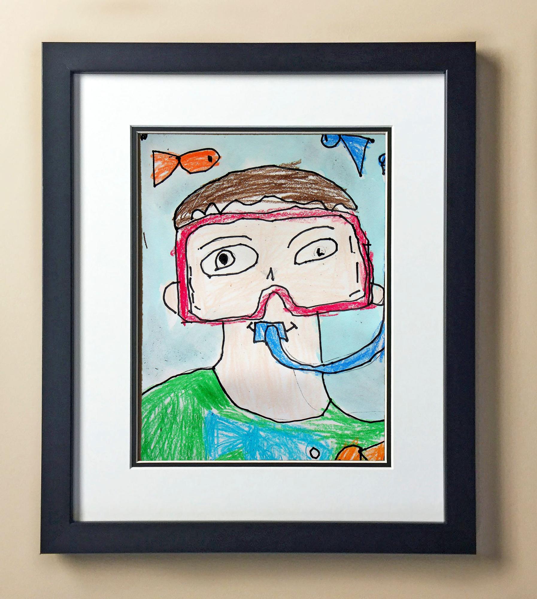 Included with the purchase is the Students Artwork, Frame, double matboard, shatter proof plexiglass, and a ready to hang backerboard with turnbuttons