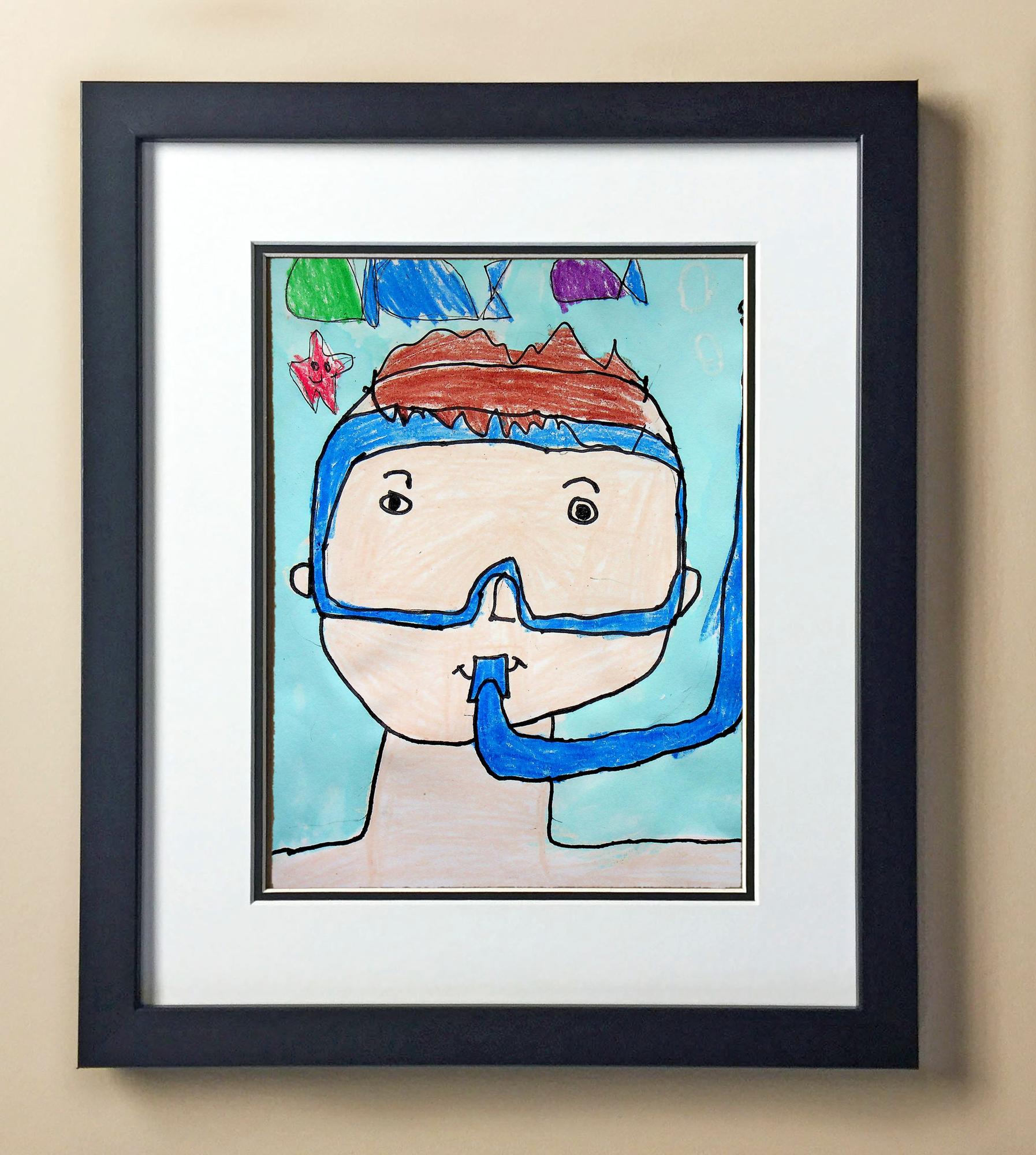 Included with the purchase is the Students Artwork, Frame, double matboard, shatter proof plexiglass, and a ready to hang backerboard with turnbuttons