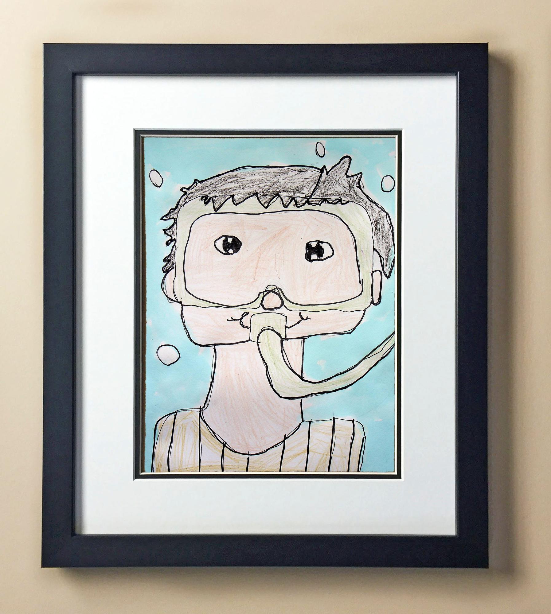 Included with the purchase is the Students Artwork, Frame, double matboard, shatter proof plexiglass, and a ready to hang backerboard with turnbuttons