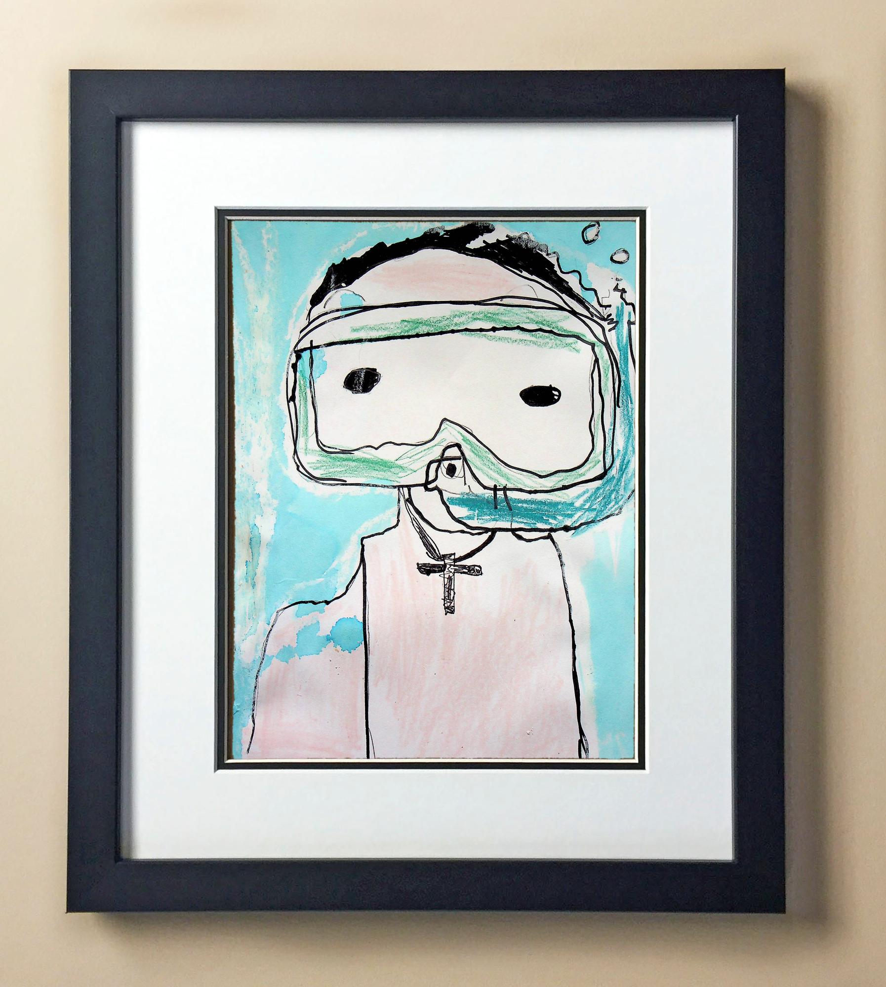 Included with the purchase is the Students Artwork, Frame, double matboard, shatter proof plexiglass, and a ready to hang backerboard with turnbuttons