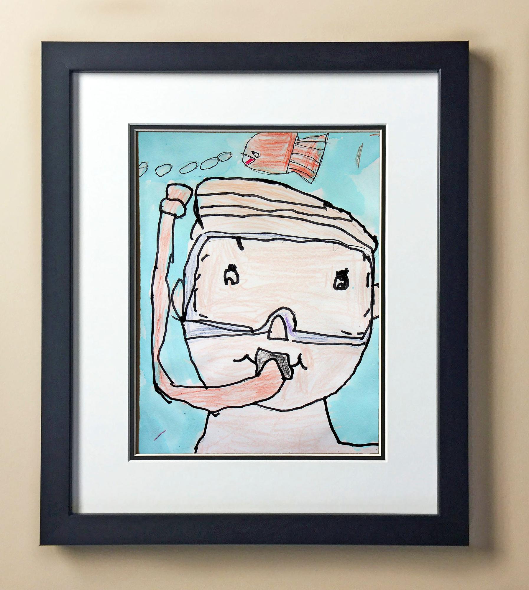 Included with the purchase is the Students Artwork, Frame, double matboard, shatter proof plexiglass, and a ready to hang backerboard with turnbuttons