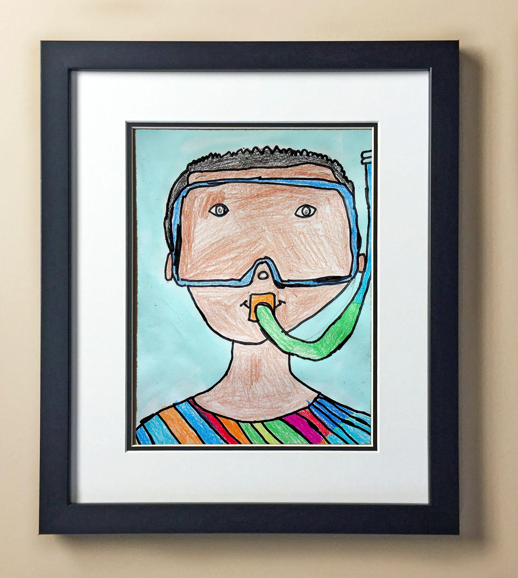 Included with the purchase is the Students Artwork, Frame, double matboard, shatter proof plexiglass, and a ready to hang backerboard with turnbuttons