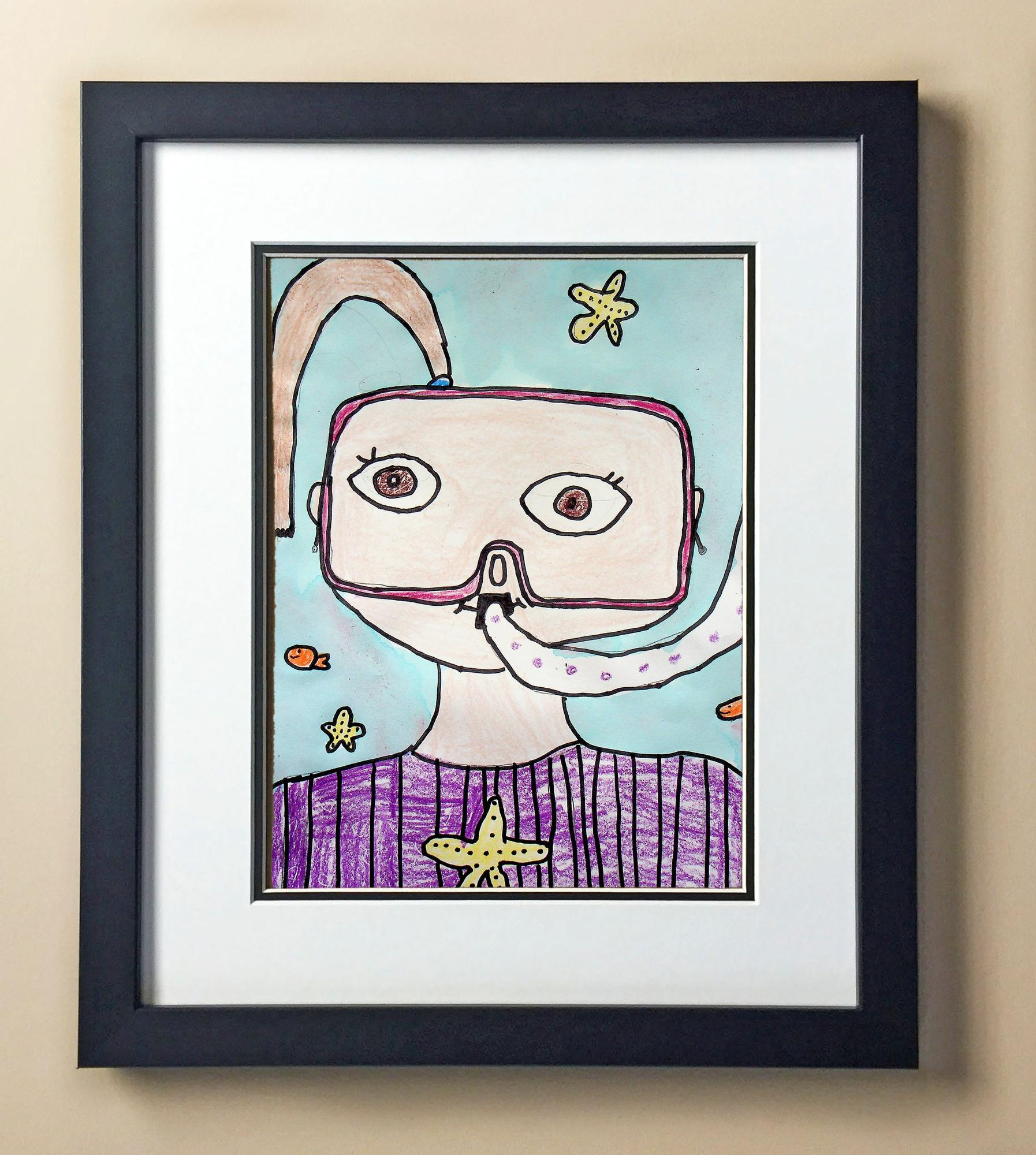 Included with the purchase is the Students Artwork, Frame, double matboard, shatter proof plexiglass, and a ready to hang backerboard with turnbuttons
