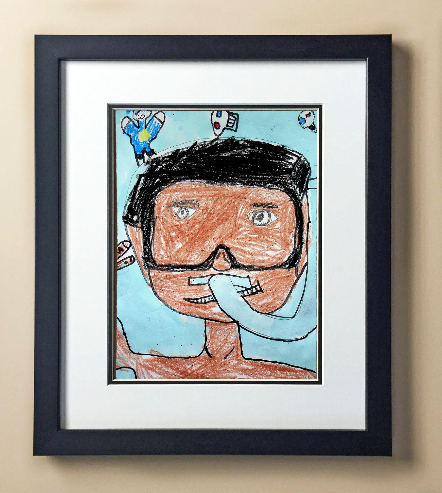 Included with the purchase is the Students Artwork, Frame, double matboard, shatter proof plexiglass, and a ready to hang backerboard with turnbuttons