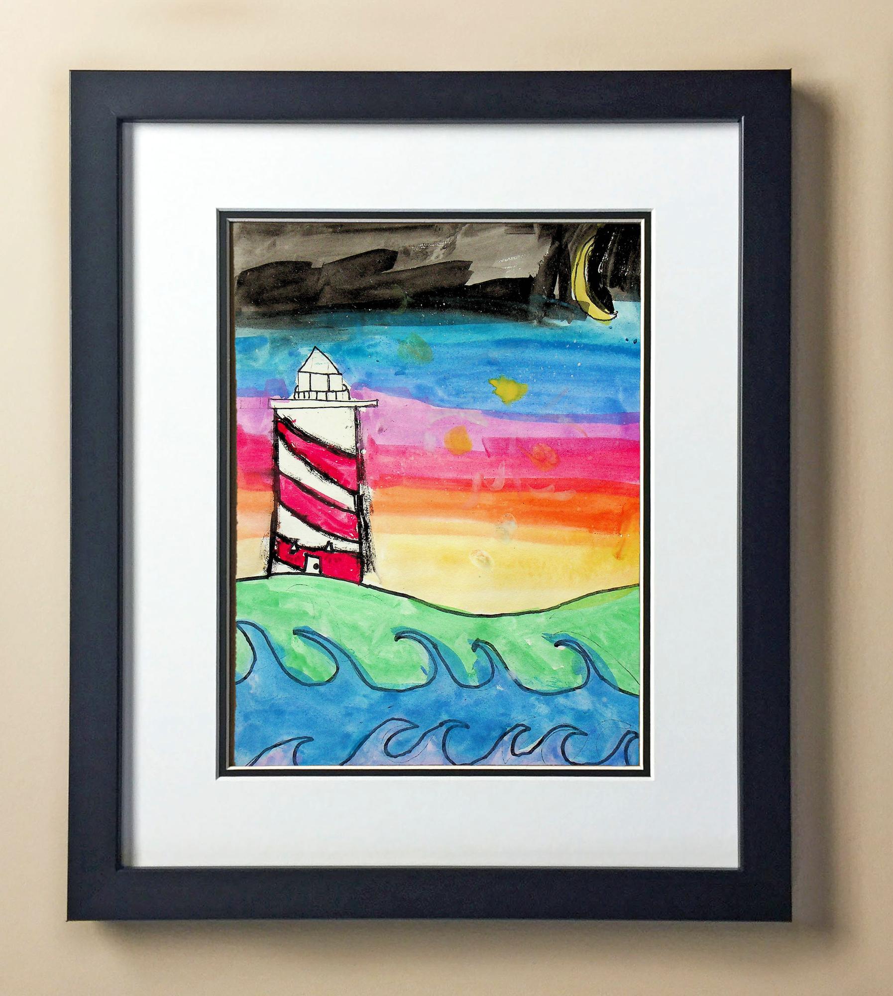 Included with the purchase is the Students Artwork, Frame, double matboard, shatter proof plexiglass, and a ready to hang backerboard with turnbuttons