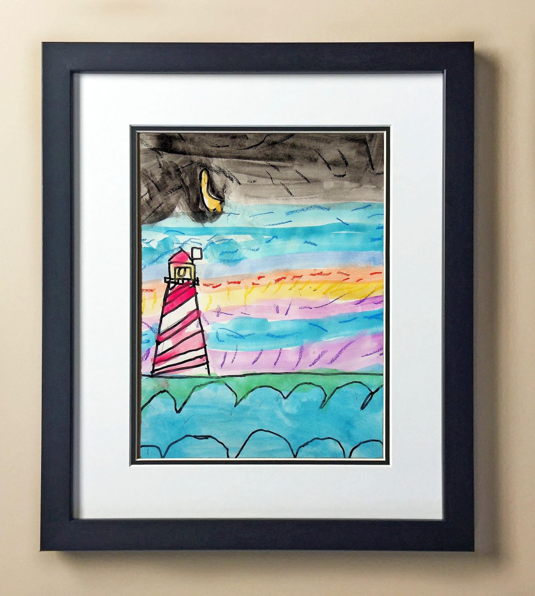Included with the purchase is the Students Artwork, Frame, double matboard, shatter proof plexiglass, and a ready to hang backerboard with turnbuttons