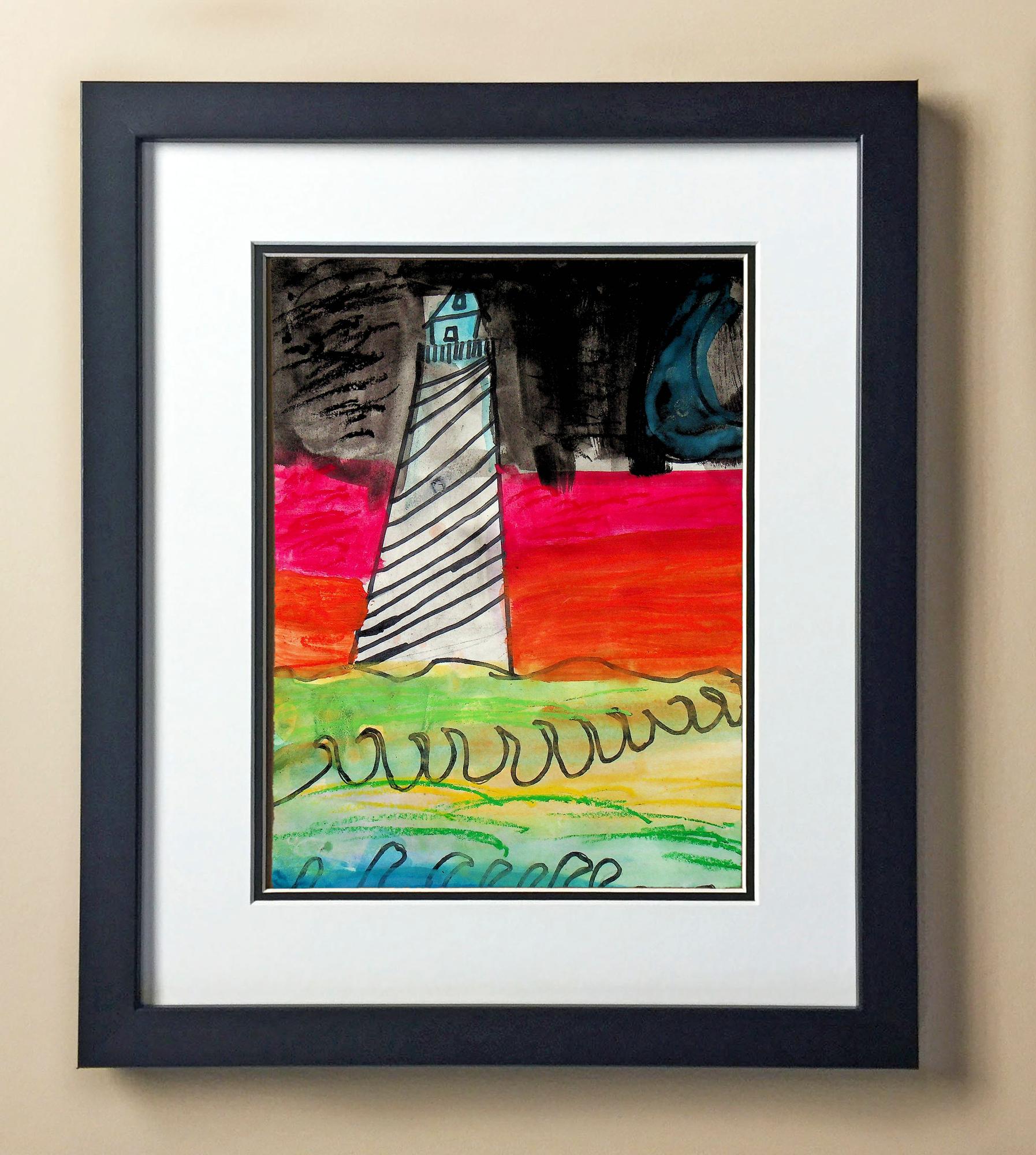 Included with the purchase is the Students Artwork, Frame, double matboard, shatter proof plexiglass, and a ready to hang backerboard with turnbuttons