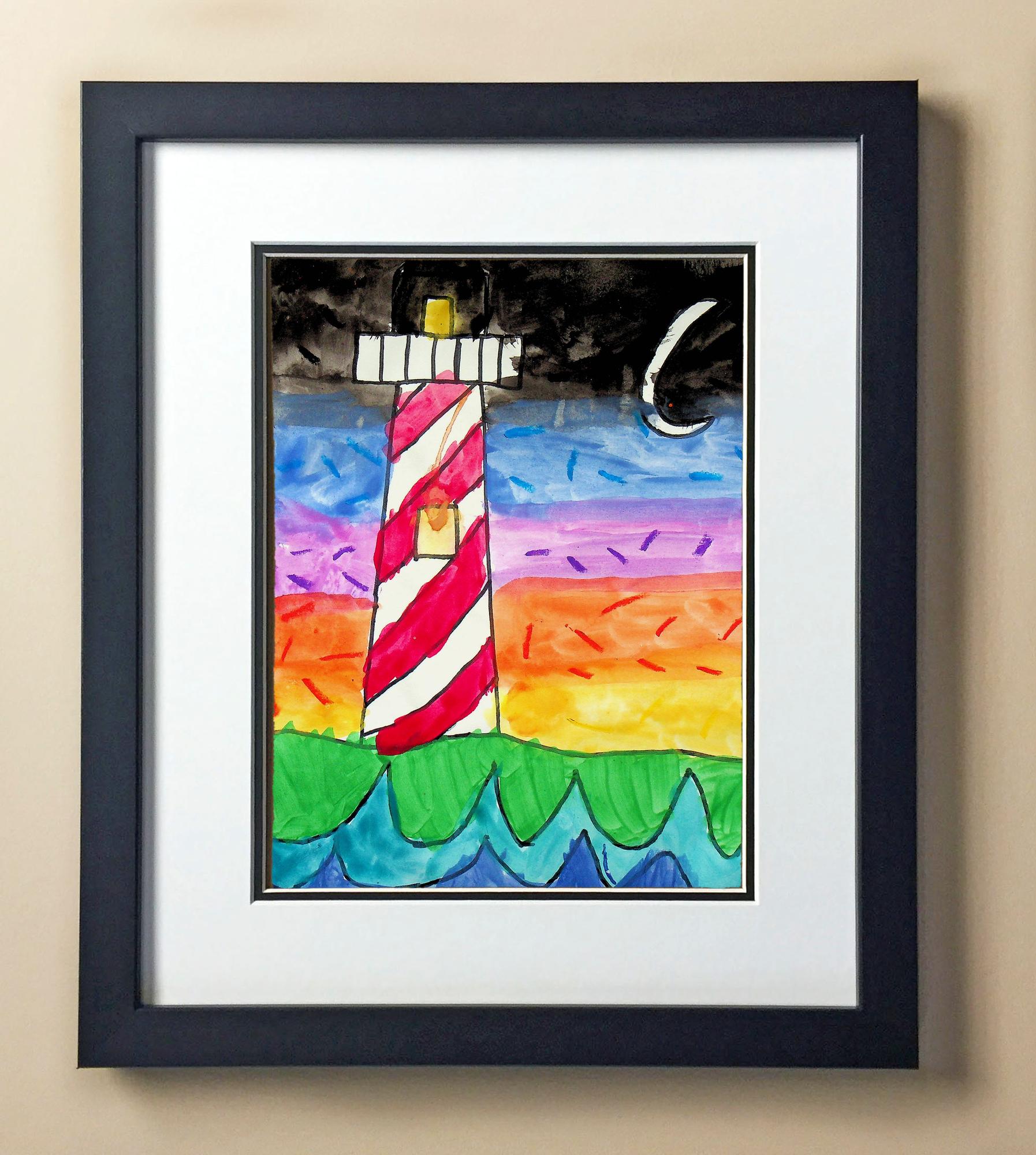 Included with the purchase is the Students Artwork, Frame, double matboard, shatter proof plexiglass, and a ready to hang backerboard with turnbuttons