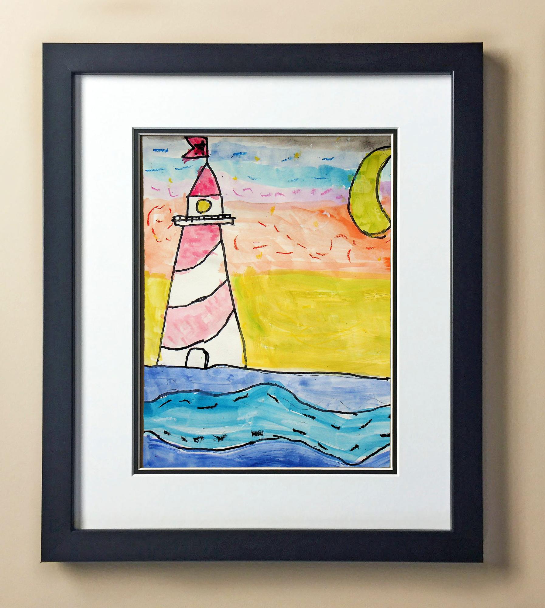 Included with the purchase is the Students Artwork, Frame, double matboard, shatter proof plexiglass, and a ready to hang backerboard with turnbuttons