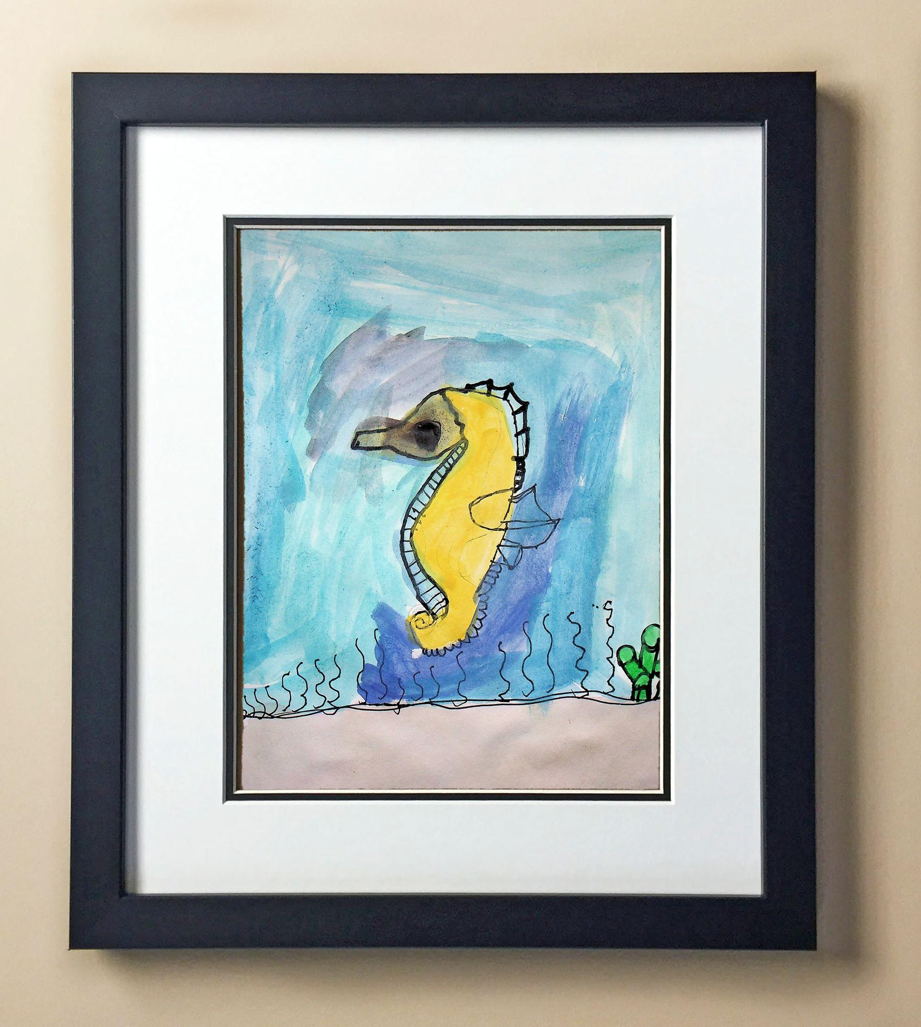 Included with the purchase is the Students Artwork, Frame, double matboard, shatter proof plexiglass, and a ready to hang backerboard with turnbuttons