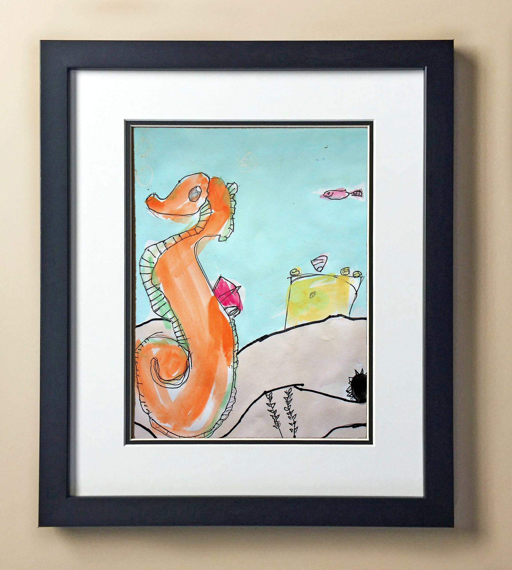 Included with the purchase is the Students Artwork, Frame, double matboard, shatter proof plexiglass, and a ready to hang backerboard with turnbuttons