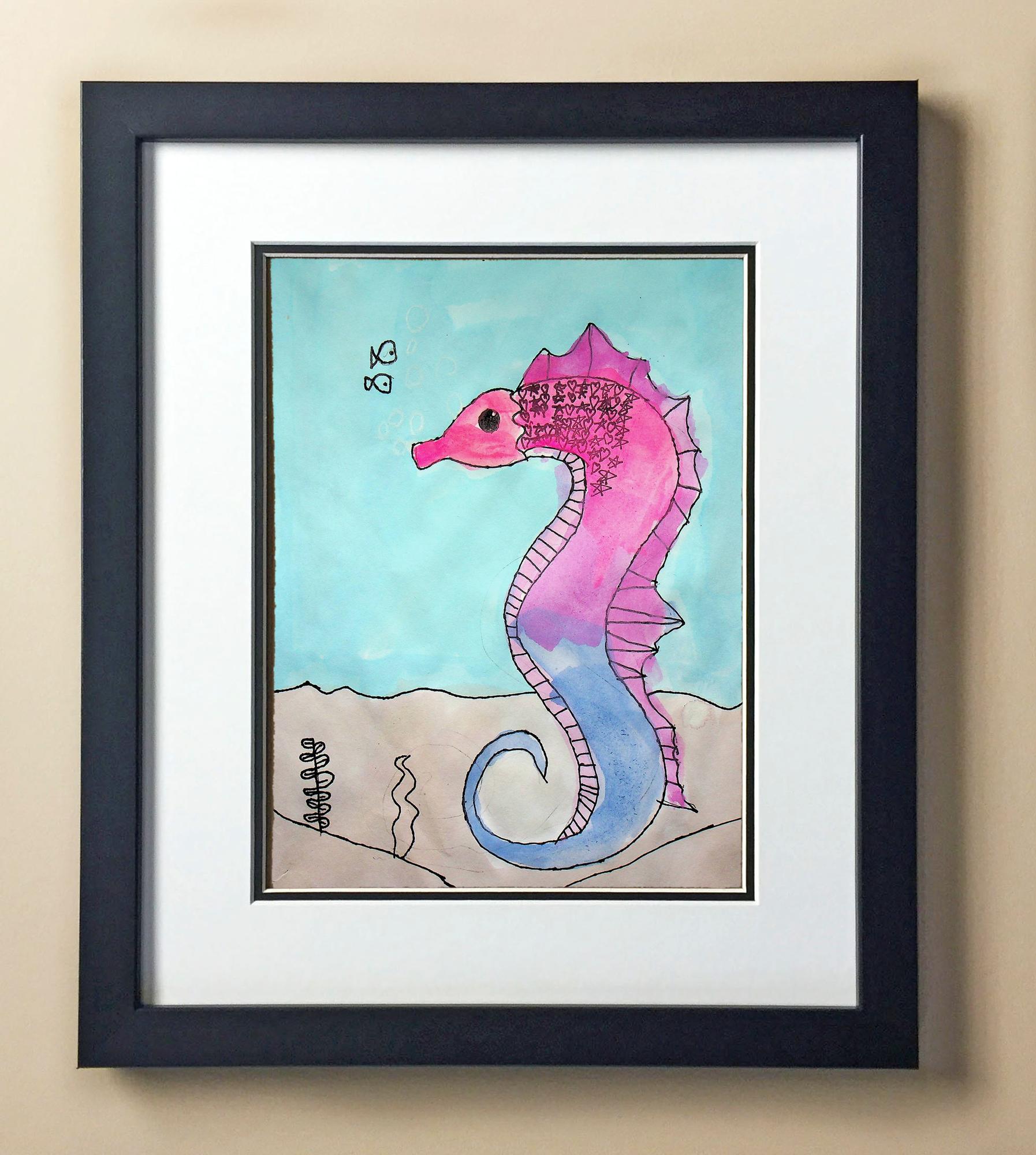 Included with the purchase is the Students Artwork, Frame, double matboard, shatter proof plexiglass, and a ready to hang backerboard with turnbuttons