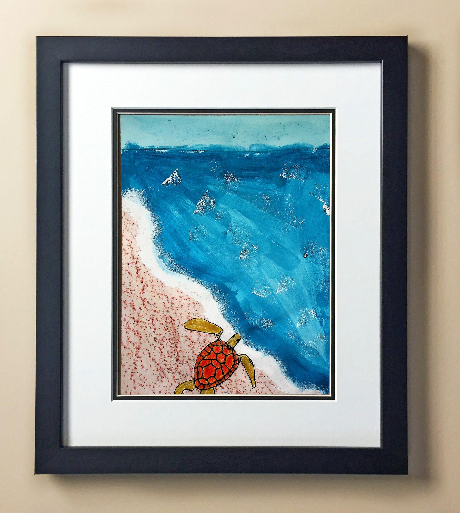 Included with the purchase is the Students Artwork, Frame, double matboard, shatter proof plexiglass, and a ready to hang backerboard with turnbuttons
