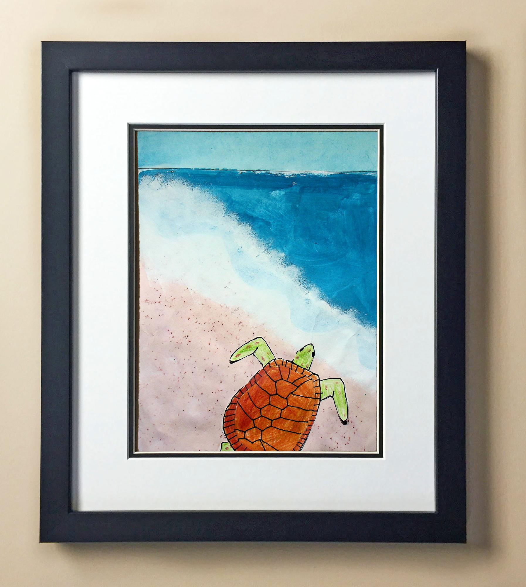 Included with the purchase is the Students Artwork, Frame, double matboard, shatter proof plexiglass, and a ready to hang backerboard with turnbuttons