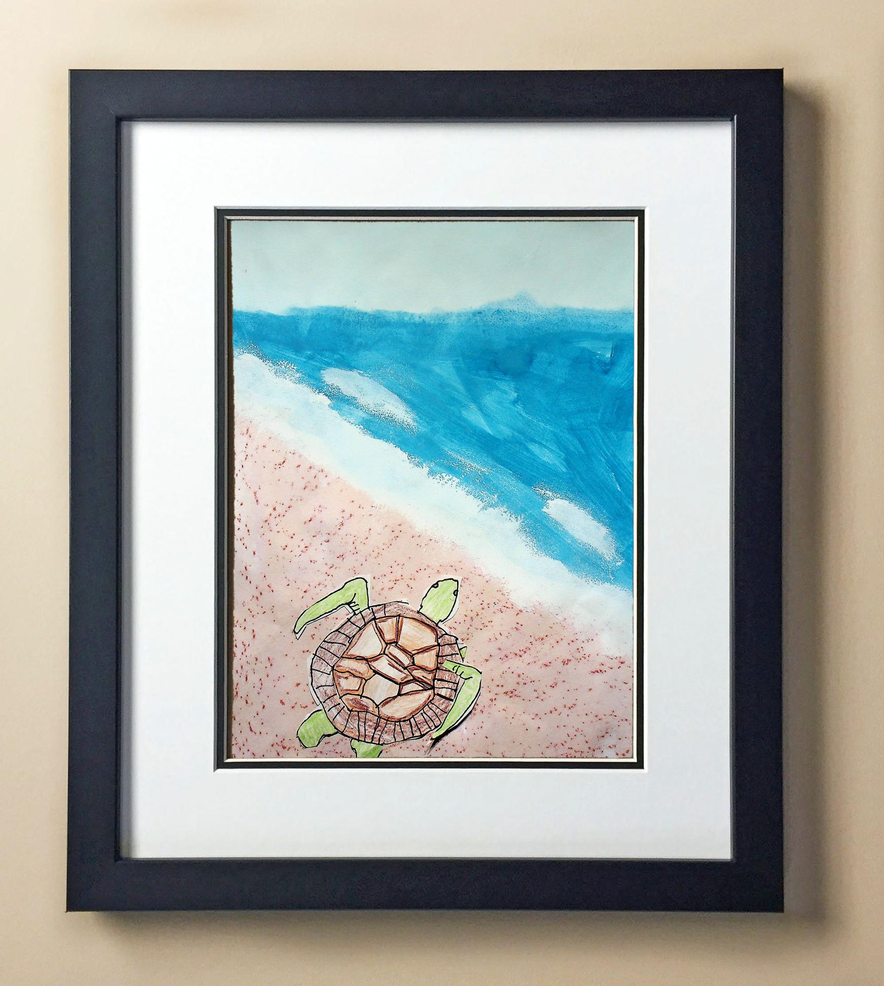 Included with the purchase is the Students Artwork, Frame, double matboard, shatter proof plexiglass, and a ready to hang backerboard with turnbuttons