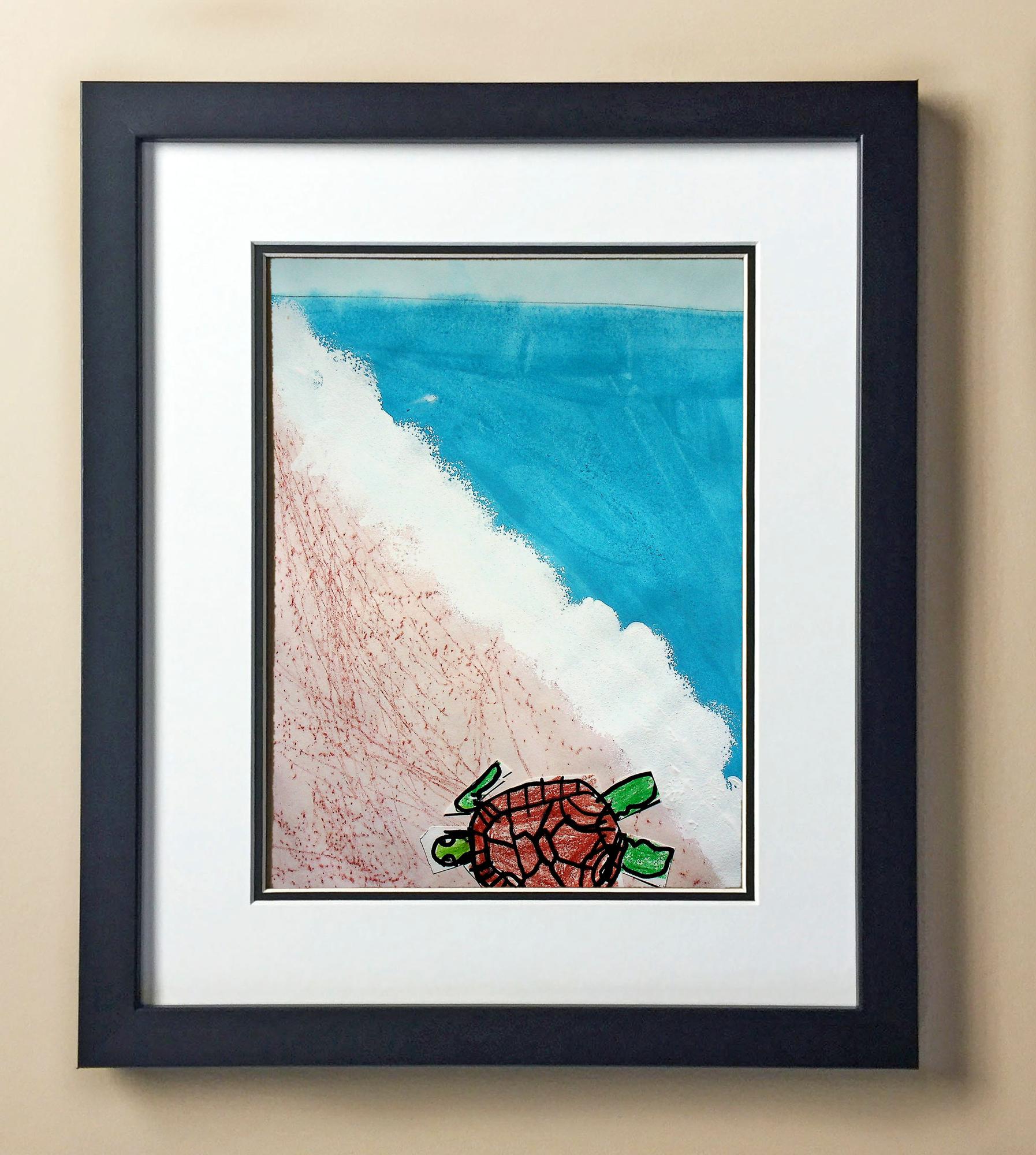 Included with the purchase is the Students Artwork, Frame, double matboard, shatter proof plexiglass, and a ready to hang backerboard with turnbuttons