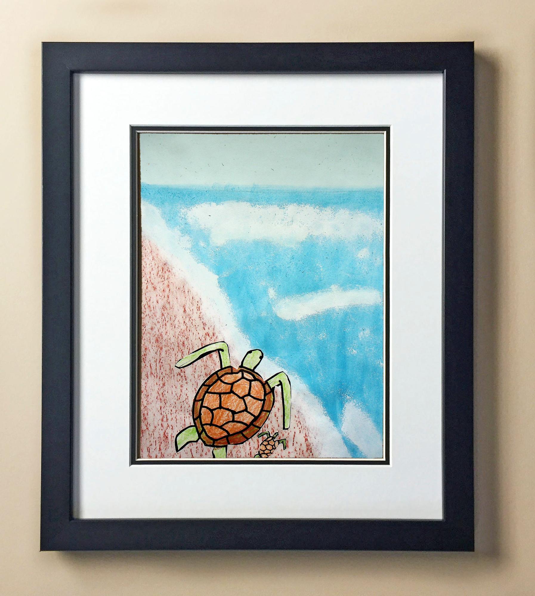 Included with the purchase is the Students Artwork, Frame, double matboard, shatter proof plexiglass, and a ready to hang backerboard with turnbuttons
