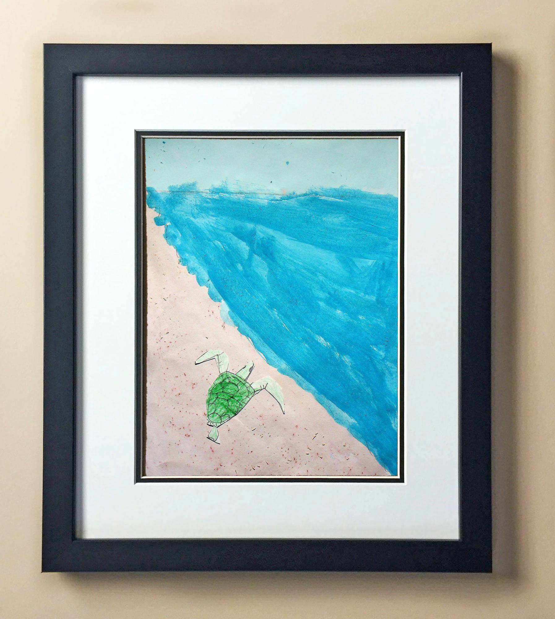 Included with the purchase is the Students Artwork, Frame, double matboard, shatter proof plexiglass, and a ready to hang backerboard with turnbuttons