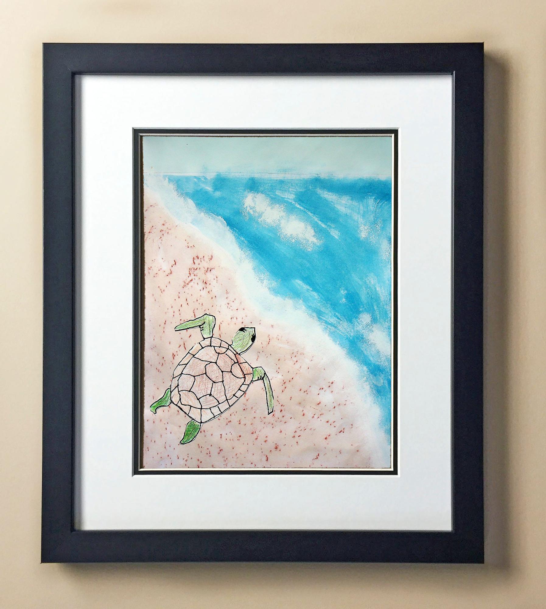 Included with the purchase is the Students Artwork, Frame, double matboard, shatter proof plexiglass, and a ready to hang backerboard with turnbuttons