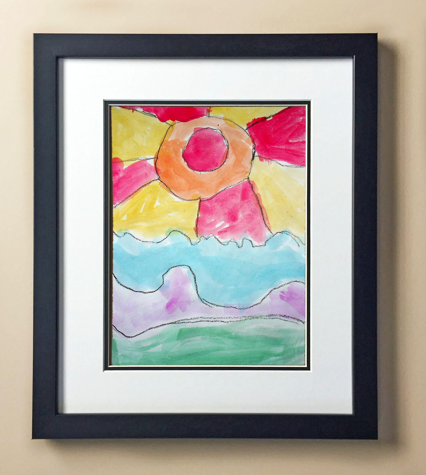 Included with the purchase is the Students Artwork, Frame, double matboard, shatter proof plexiglass, and a ready to hang backerboard with turnbuttons