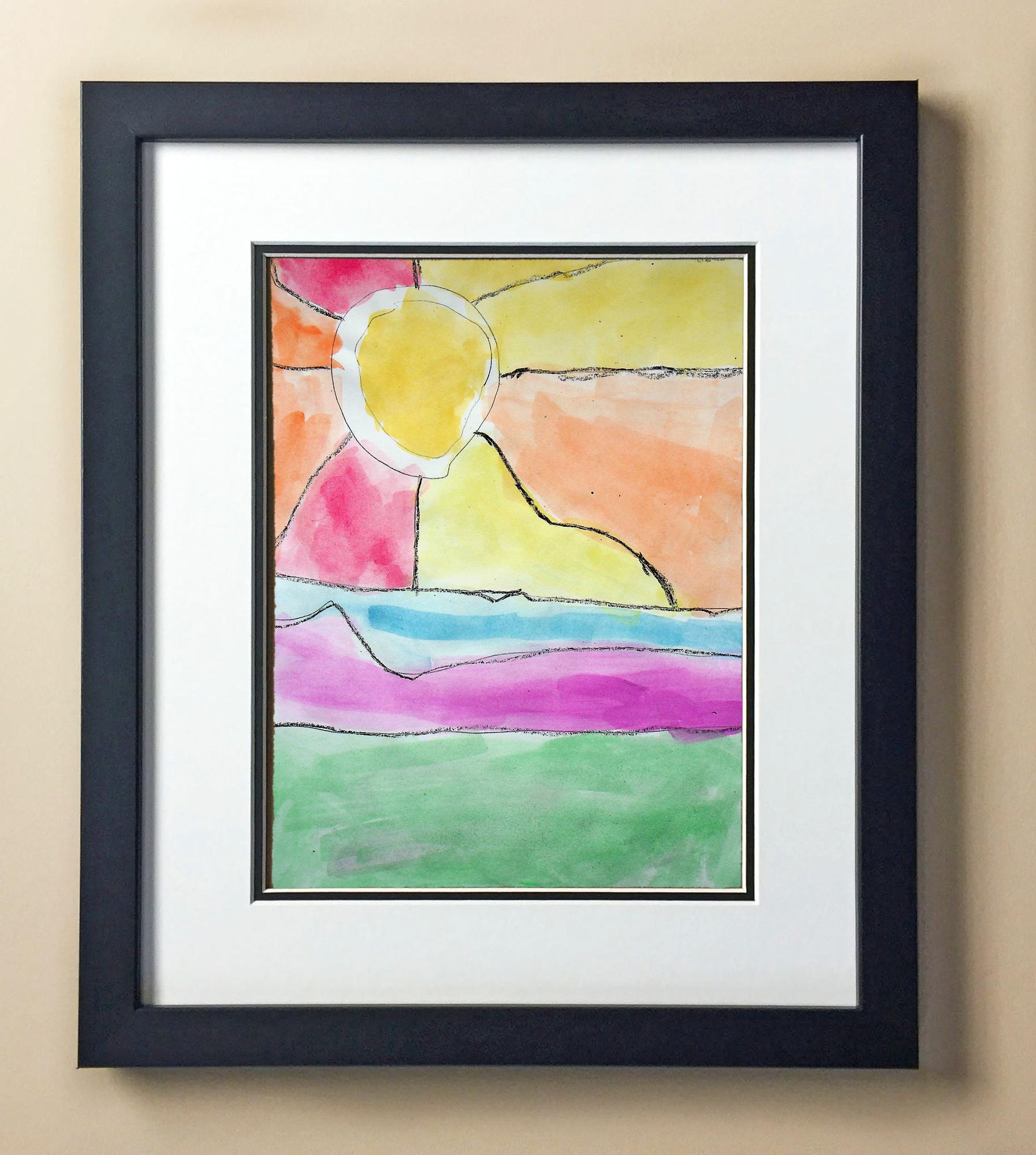 Included with the purchase is the Students Artwork, Frame, double matboard, shatter proof plexiglass, and a ready to hang backerboard with turnbuttons